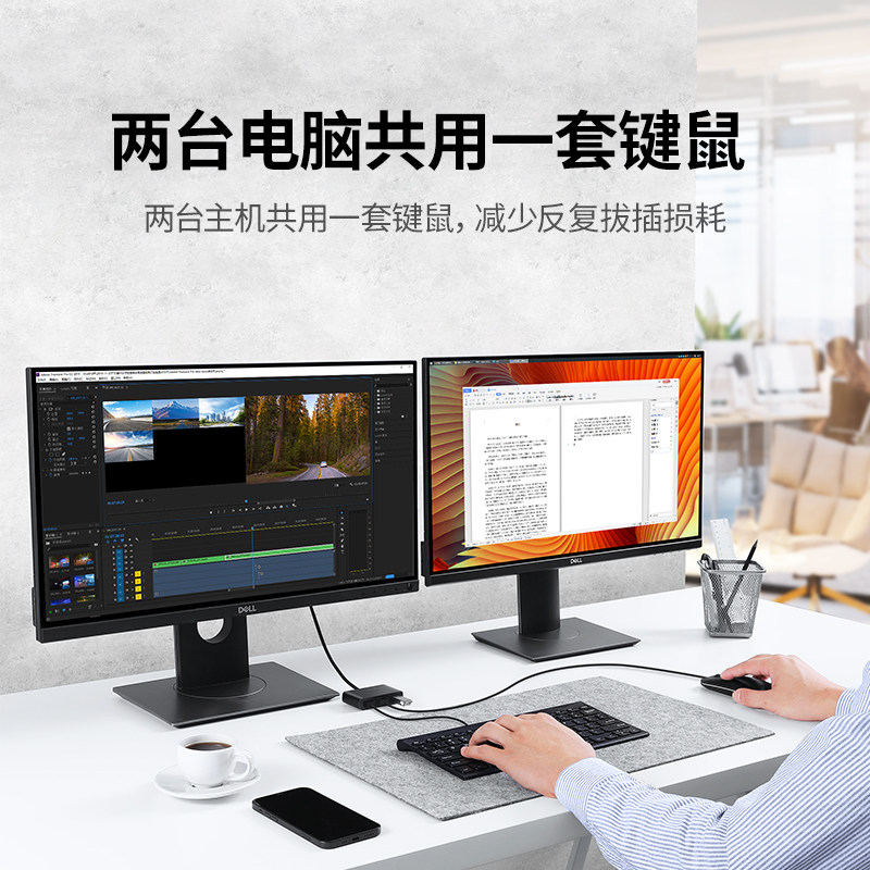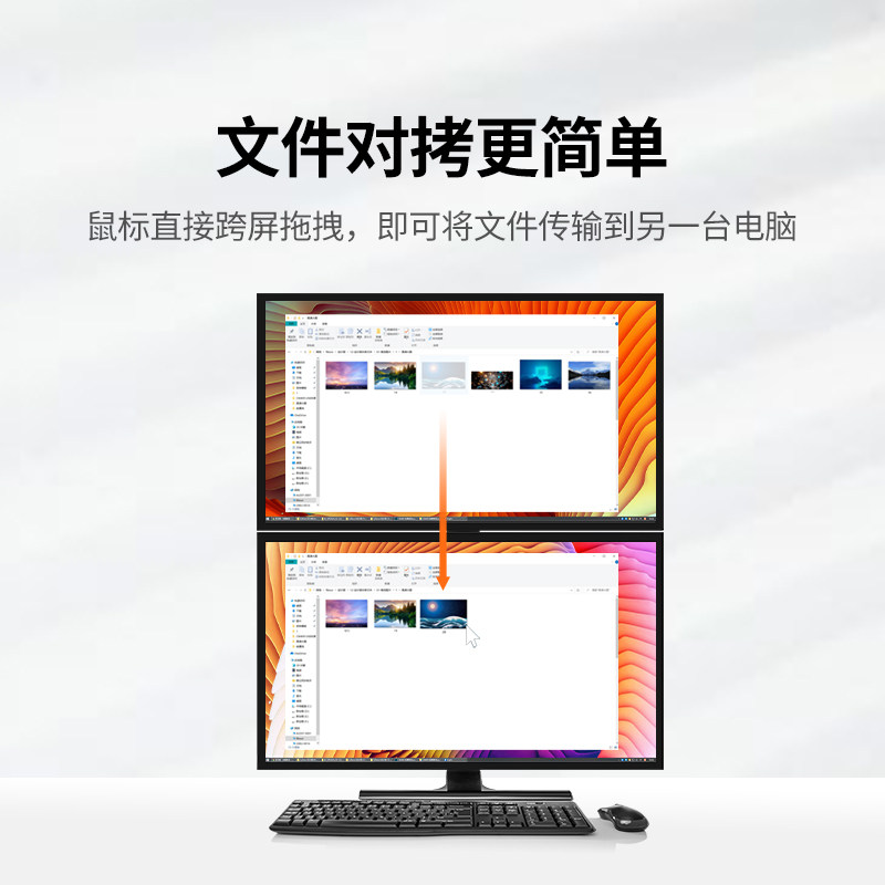 绿联 USB共享切换器跨屏KVM切换器一分二分线同步器滑屏控制器U盘笔记本主机电脑互传数据键盘鼠标共享对拷线