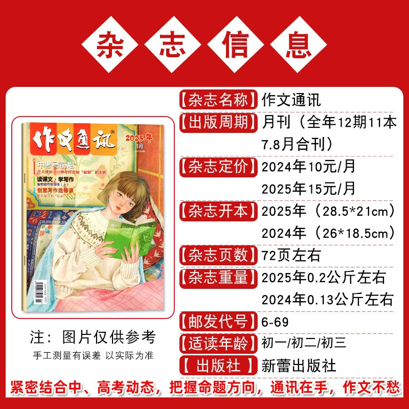 半年订阅 作文通讯杂志初中版 全年 2月新 12月作文素材初高中生作文高分范文精选中考满分作文热点时事新闻 2026年1