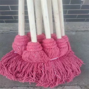 普通大圆头实木杆墩布棉线吸水拖把绒线布条老式 拖布酒店物业加厚