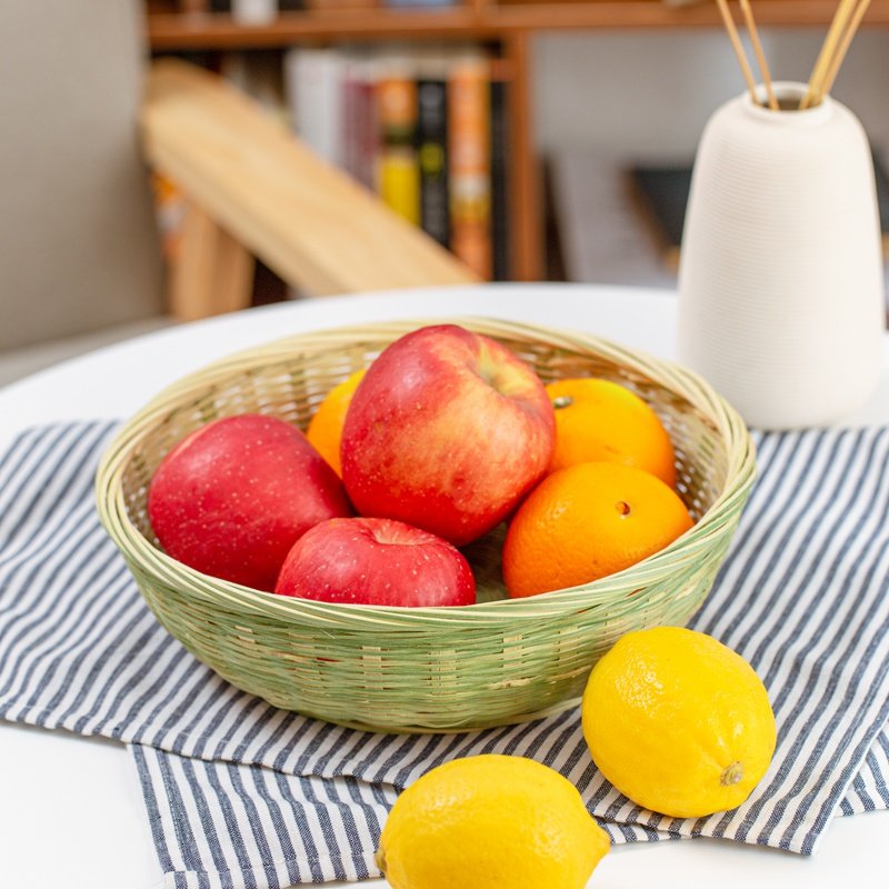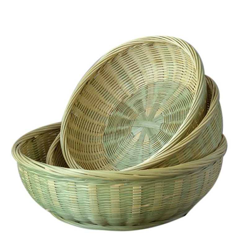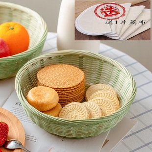 竹编篮带底座水果篮家用馒头筐竹制品竹青厨房洗菜篮手工竹编制品