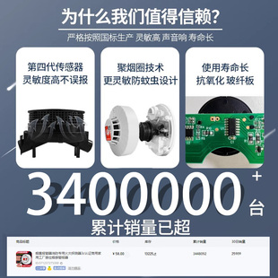 烟雾报警器消防专用火灾探测器3c认证商用家用工厂感应烟感警报器