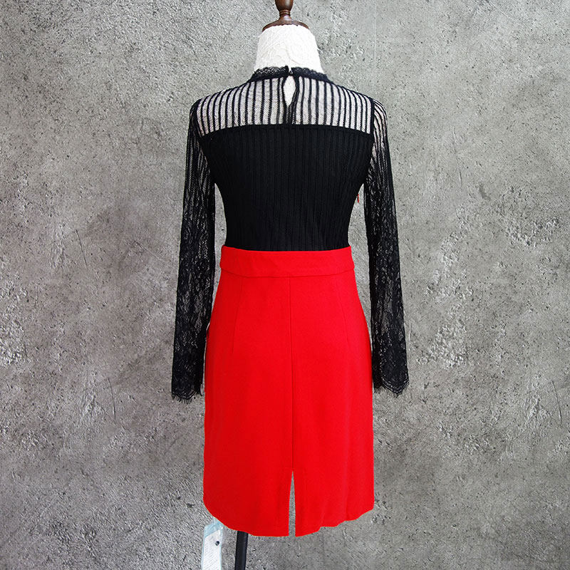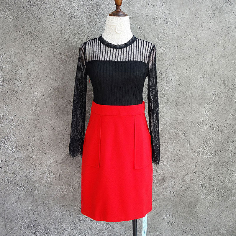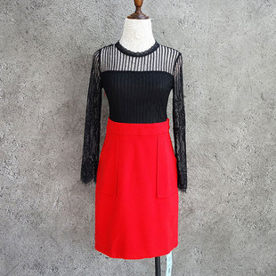 口袋修身 纤衣姐姐 典雅柔美 春夏秋 打底蕾丝棉质针织连衣裙 迪欧