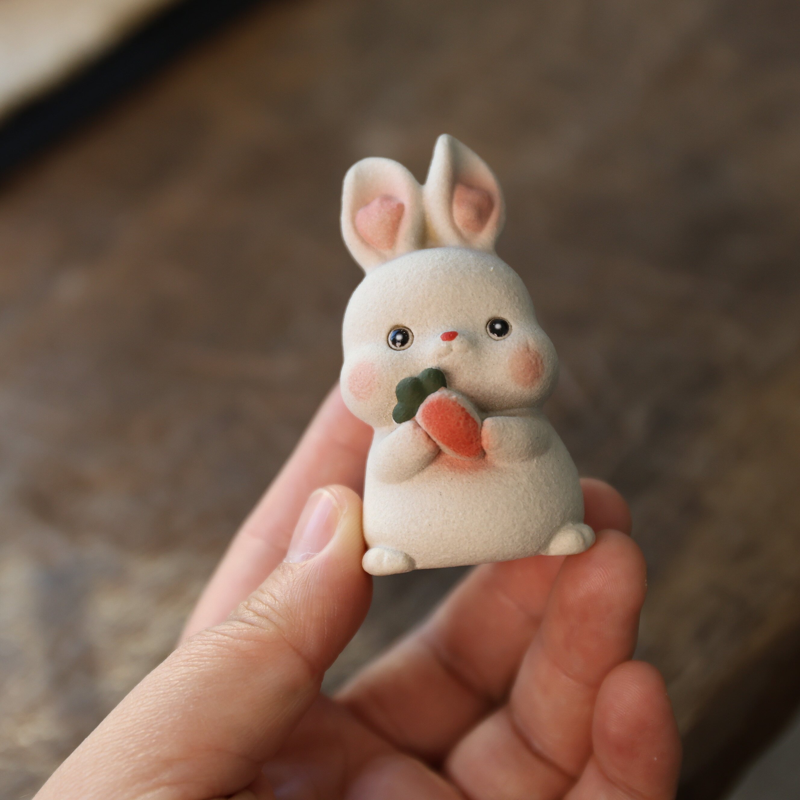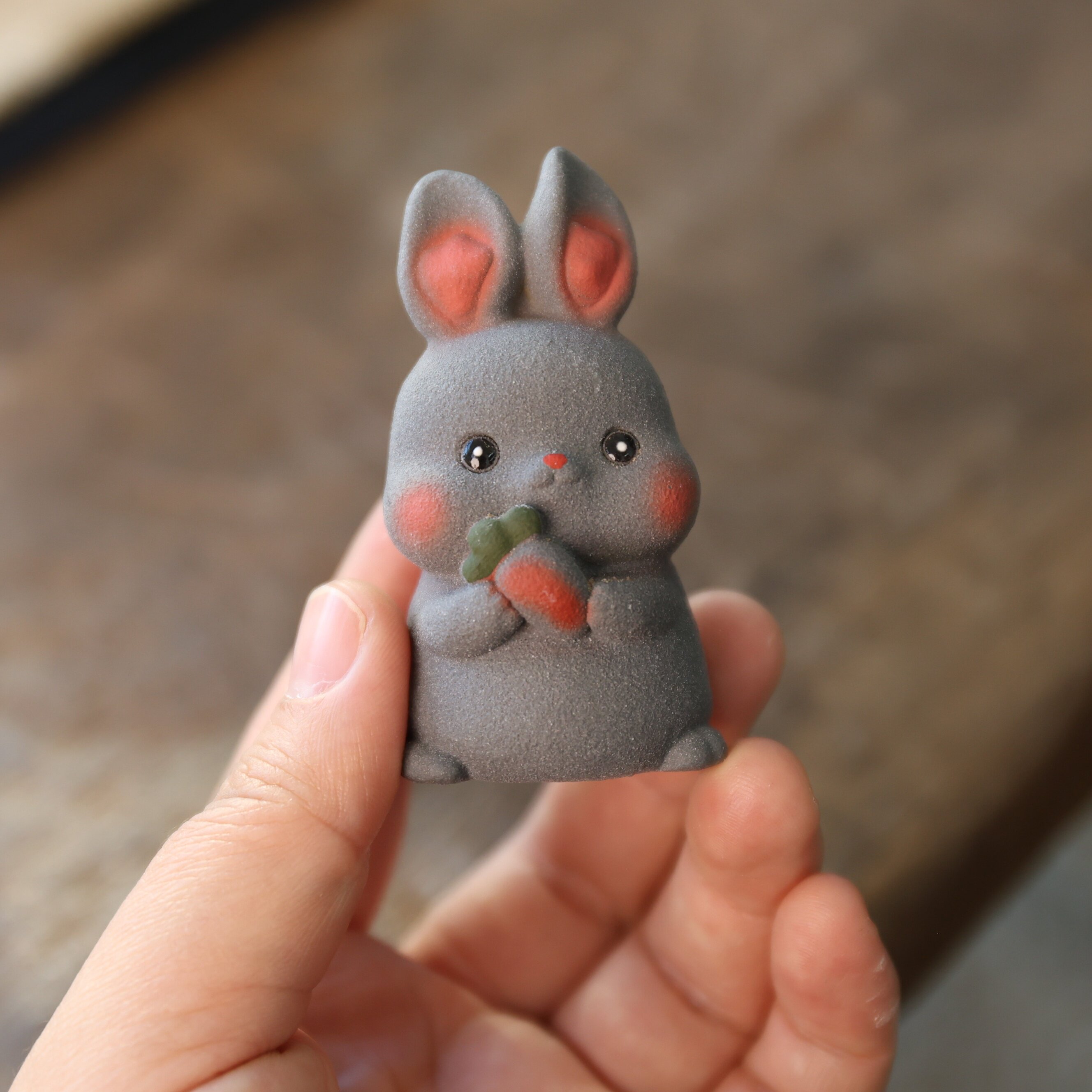 宜兴紫砂茶宠福瑞双兔原矿紫砂手工生肖兔茶具桌面装 饰品摆件可养