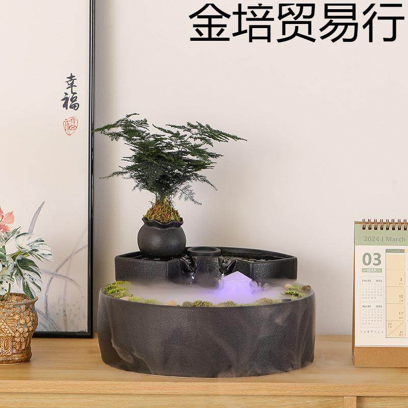 创意陶瓷流水循环水招财办公室桌面装 饰品茶几喷泉水景小摆件开业