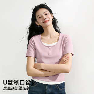 假两件上衣小个子小众高级感体恤PC 2026新款 雪中飞短袖 t恤女夏季