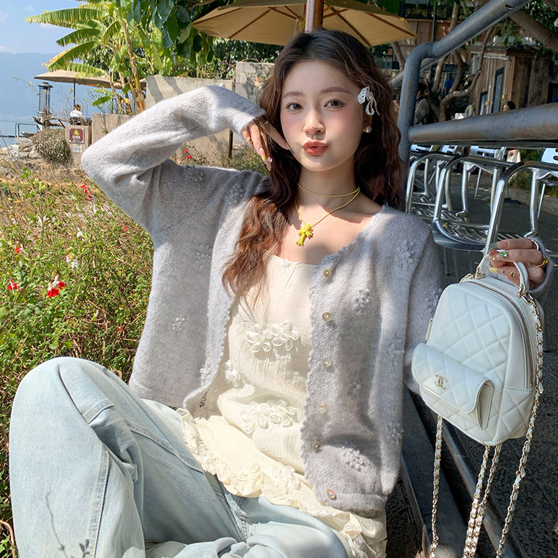 防晒罩衫 薄款 上衣 外套女外穿2026春夏新款 龙妹家紫色羊毛针织开衫