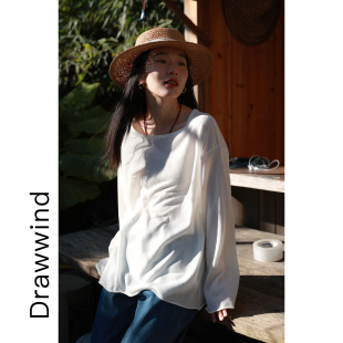 女宽松慵懒镂空透气空调衫 针织防晒罩衫 长袖 画风drawwind春夏新款