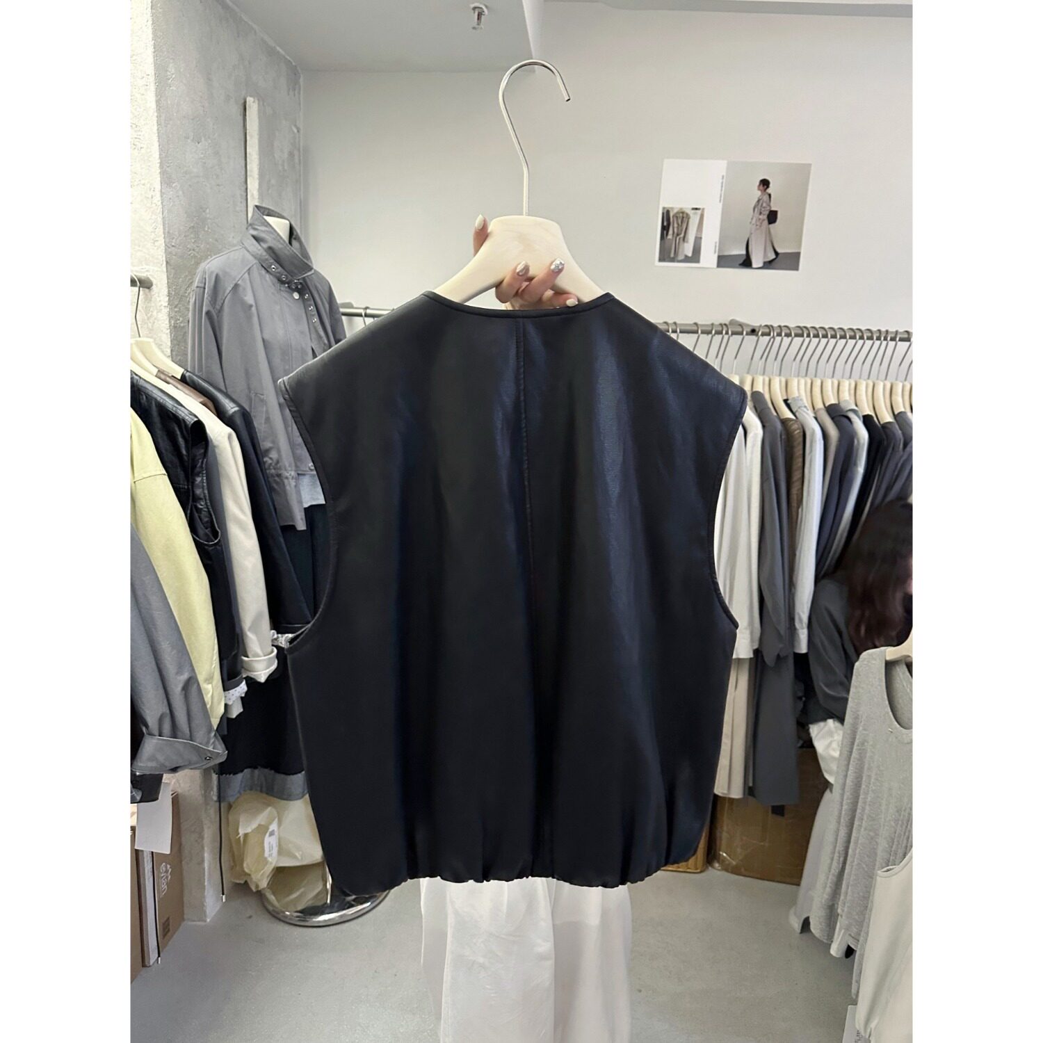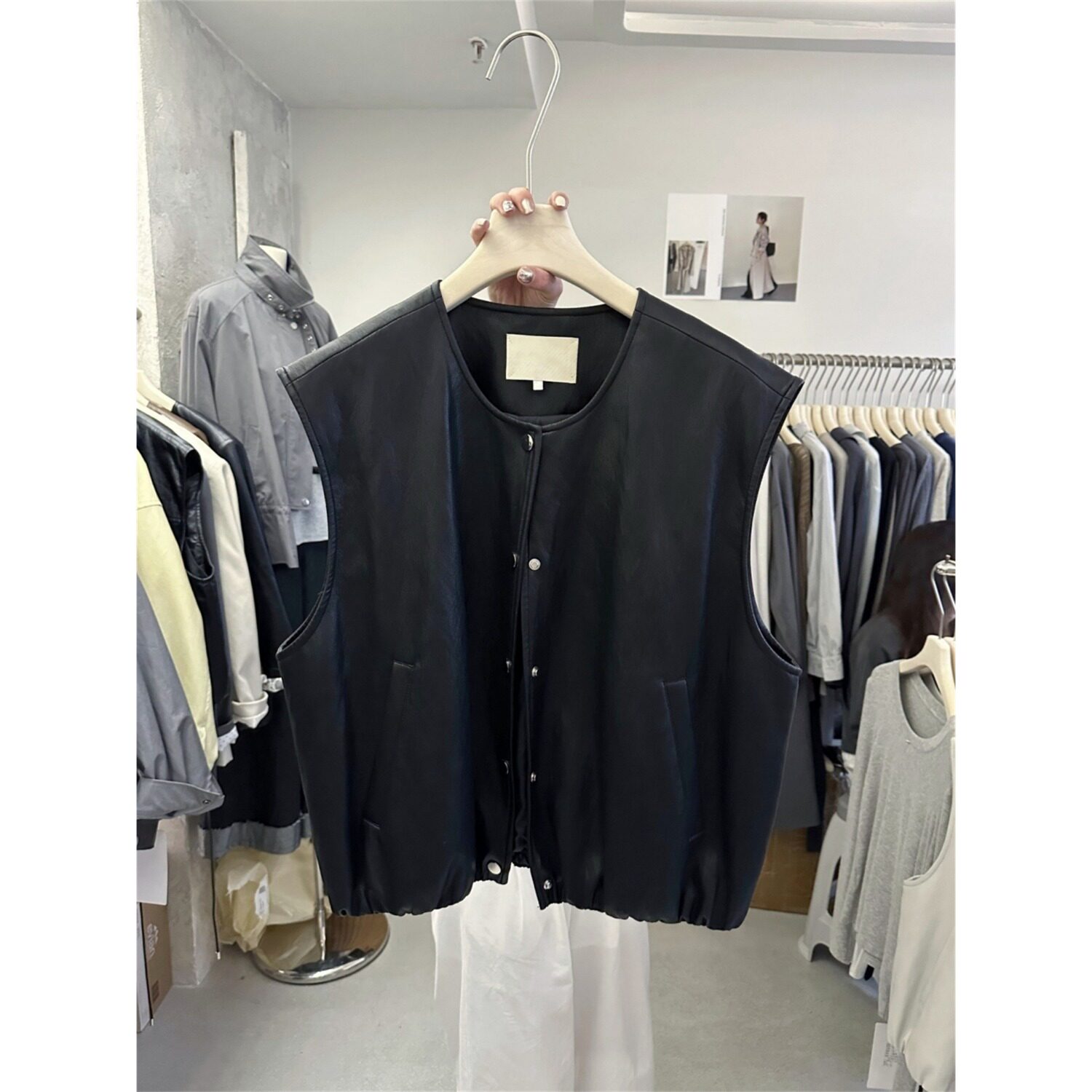 短款 PU皮衣马甲女春秋新款 叠穿宽松背心外套 复古圆领咖色无袖 大码