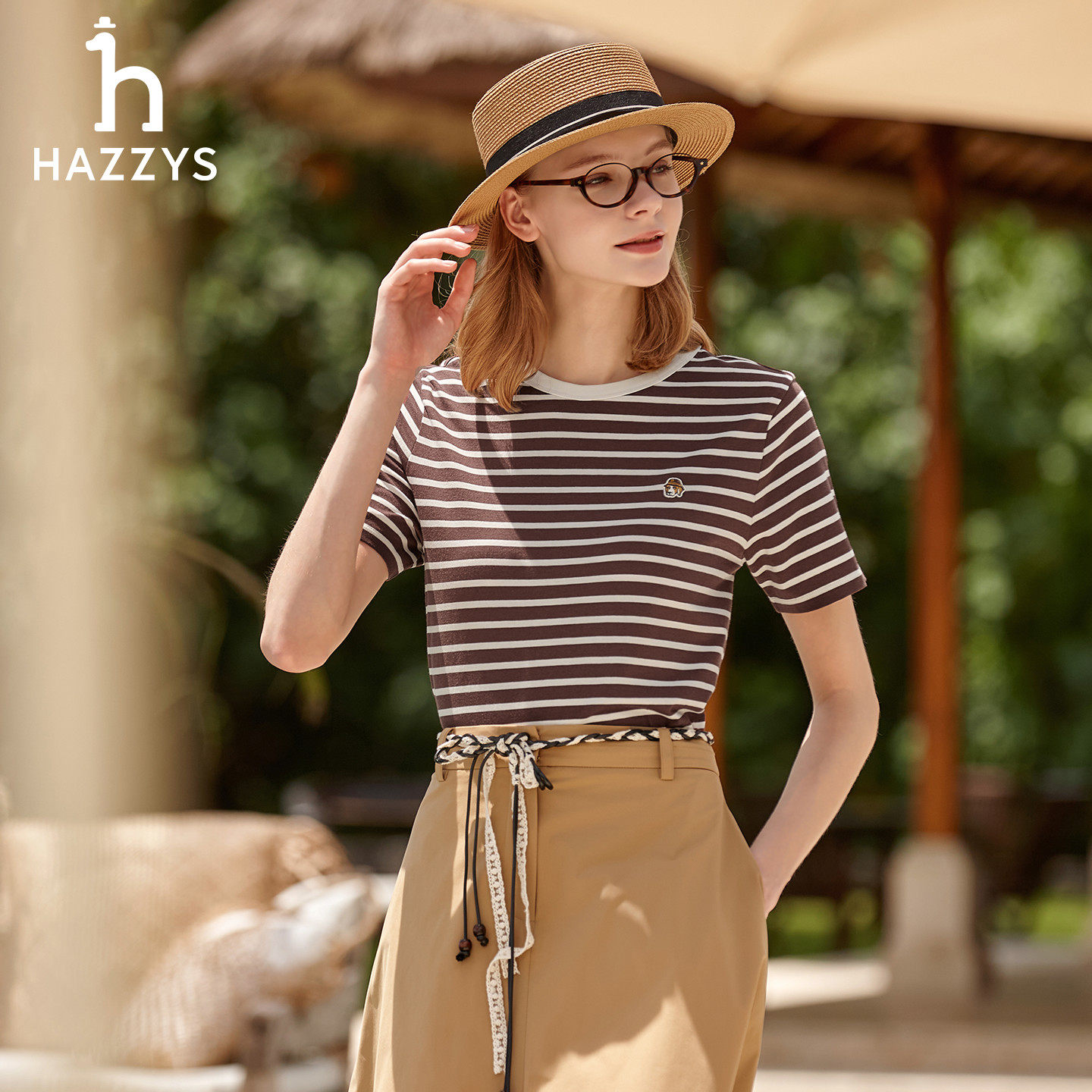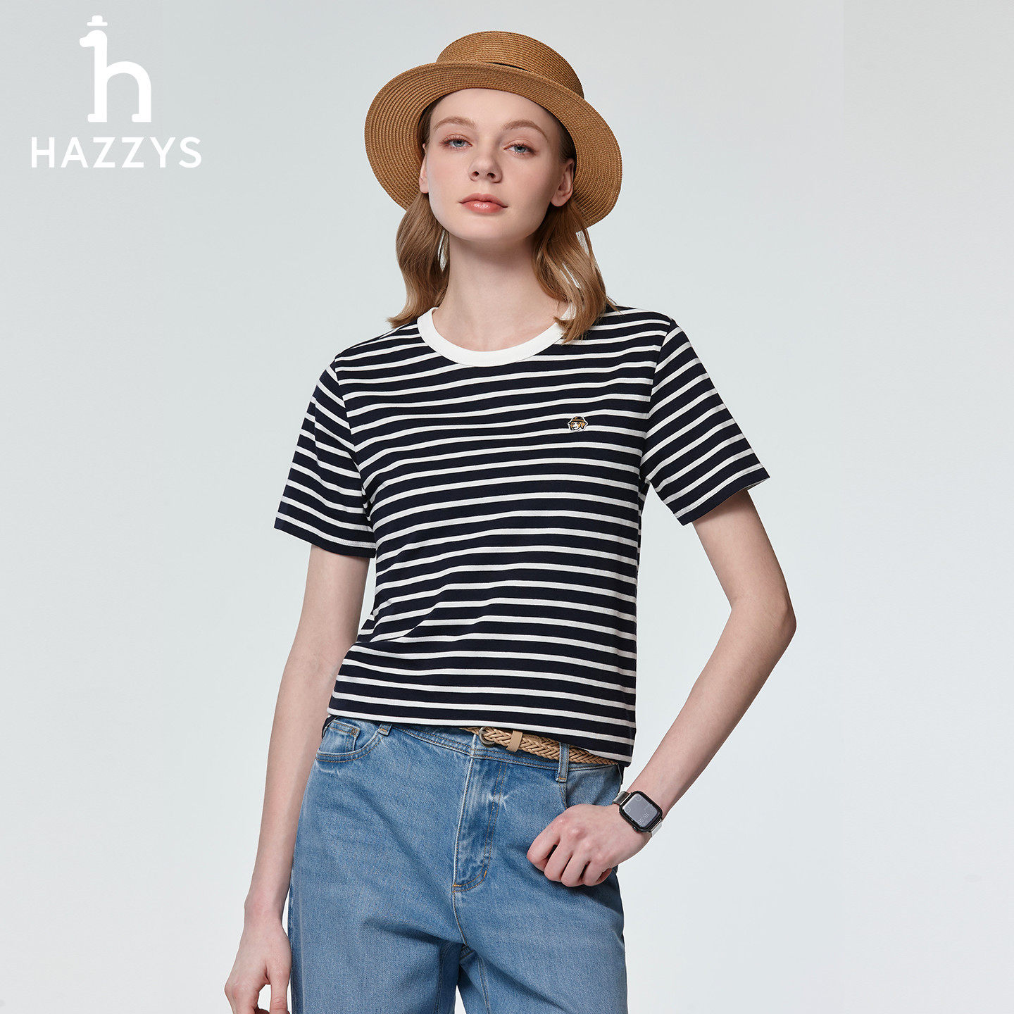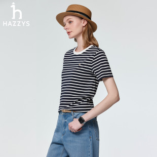 上衣潮 Hazzys哈吉斯条纹T恤女宽松通勤休闲圆领短袖 春夏甄选