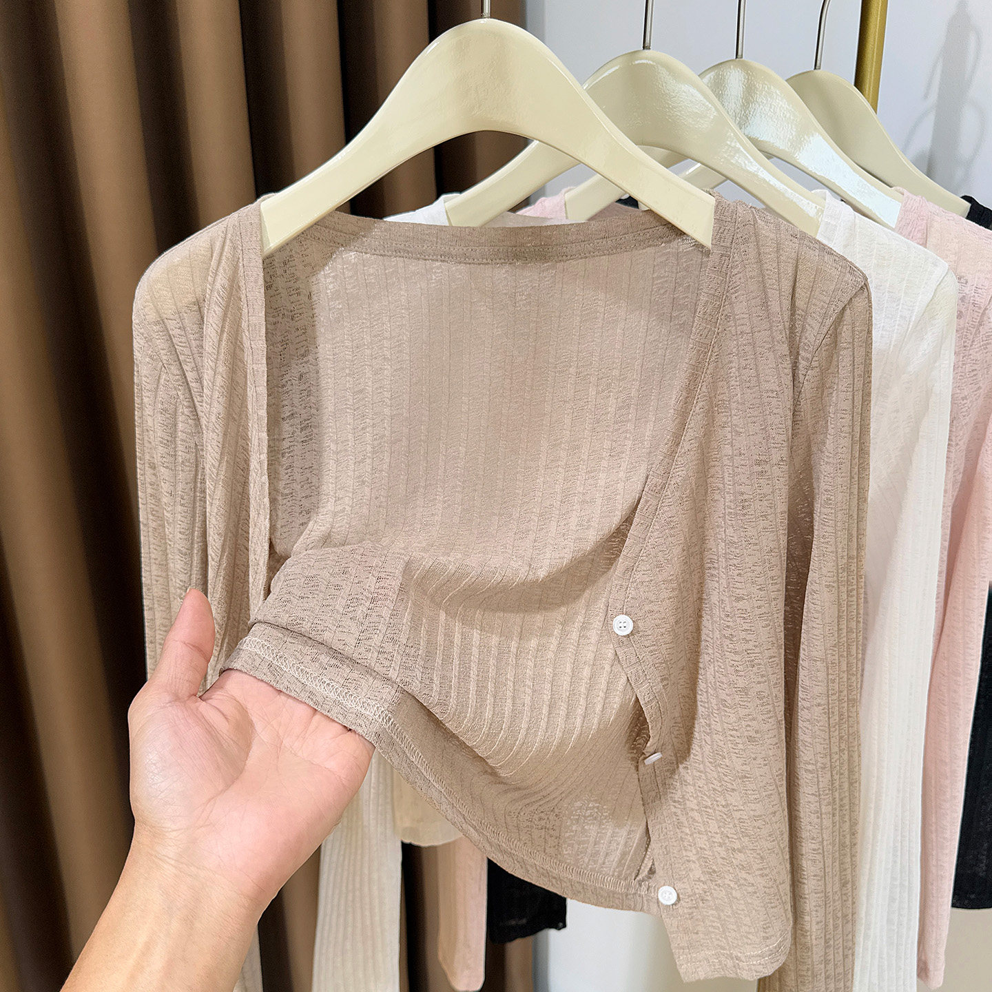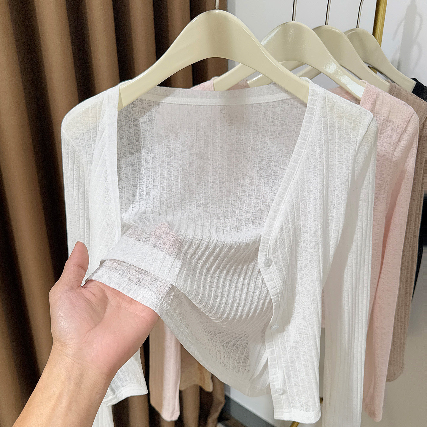 配吊带裙披肩花纱小外套 女2026春夏短款 粉色外搭薄款 冰丝针织开衫