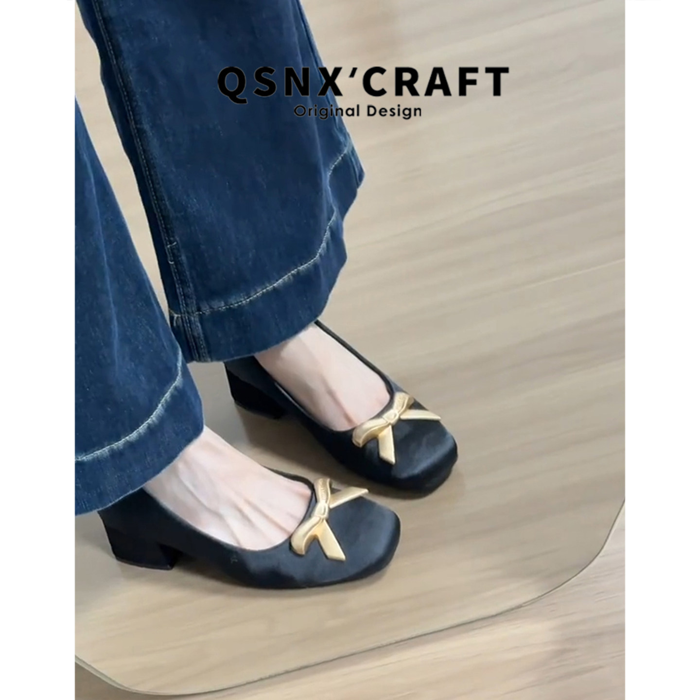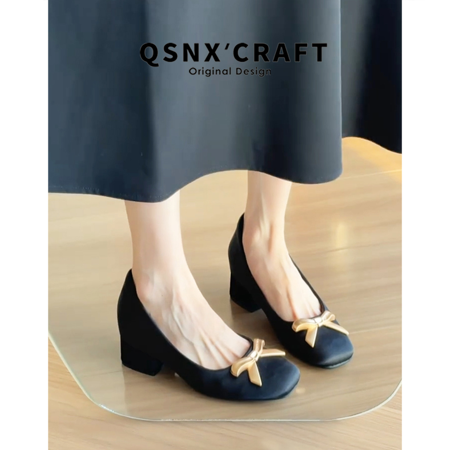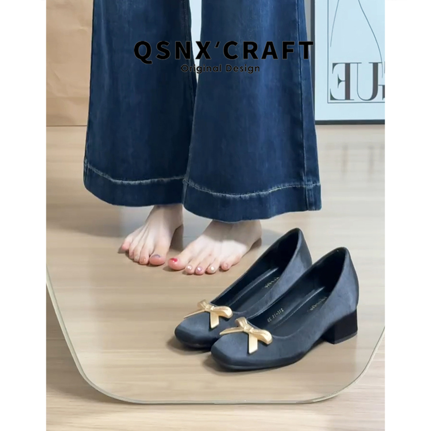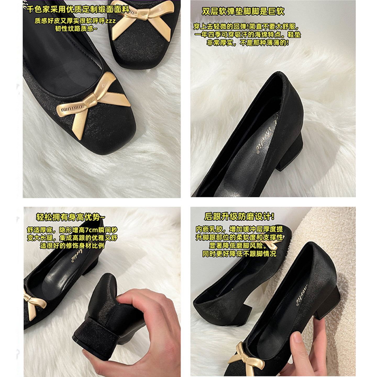 一脚蹬高跟鞋 羊皮版 内增高蝴蝶结浅口单鞋 女2025新款 子 方头单鞋