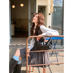 Even一雯 韩系高智感千金风假两件连衣裙显瘦百褶短裙 秀智学姐