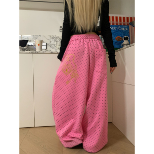 男女宽松休闲慵懒垂感直筒长裤 复古波点满印阔腿卫裤 美式 JMJ