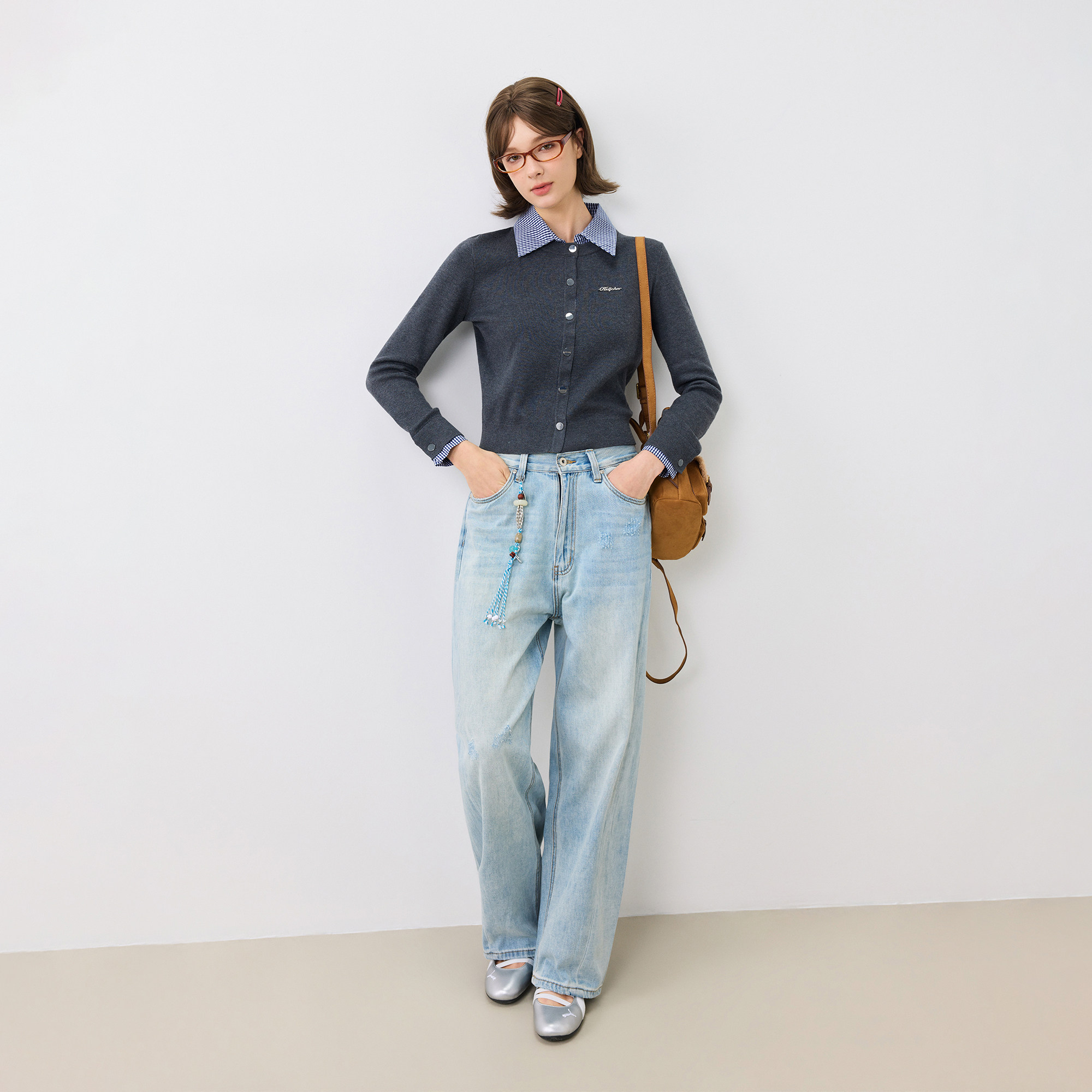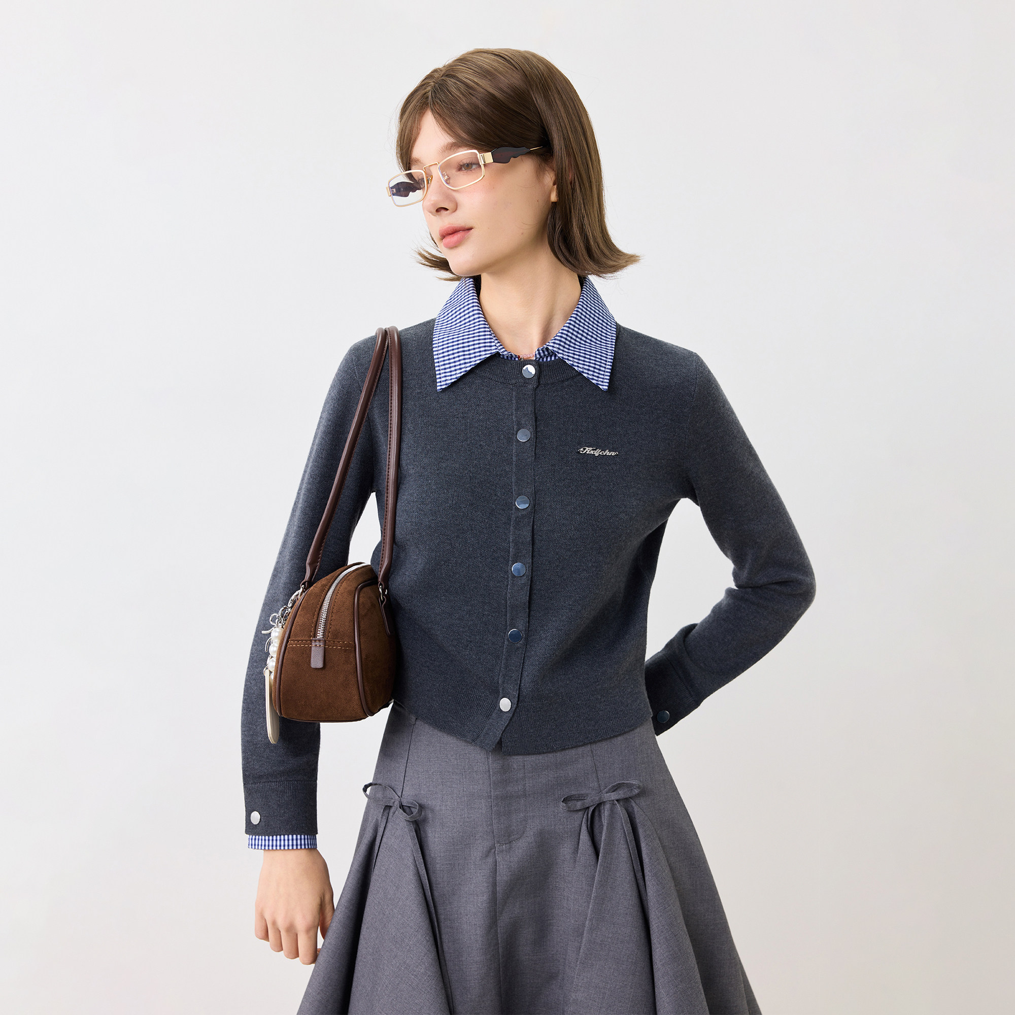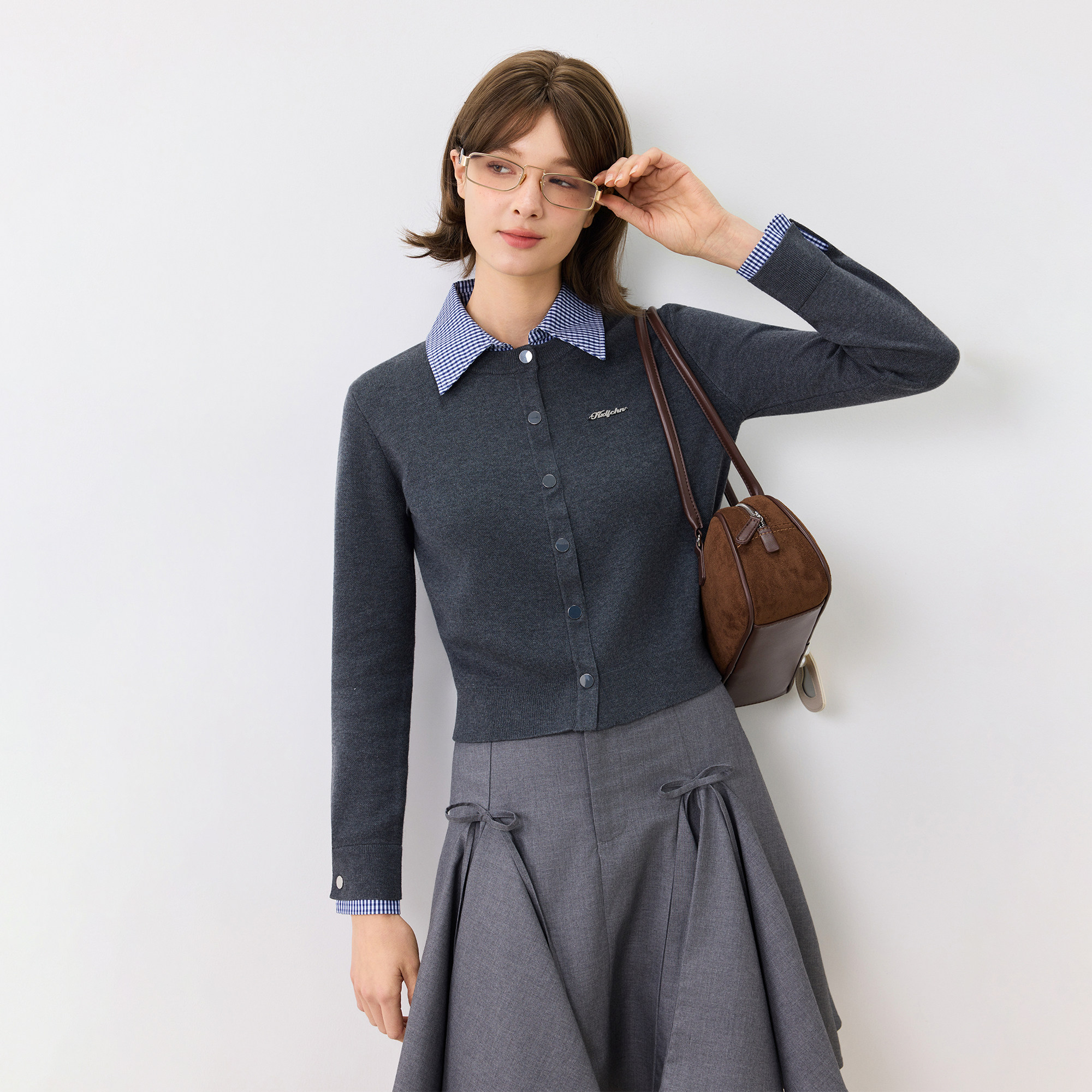 休闲长袖 毛衣开衫 上衣女 春秋百搭假两件翻领衬衫 KXLFCHN空穴来风