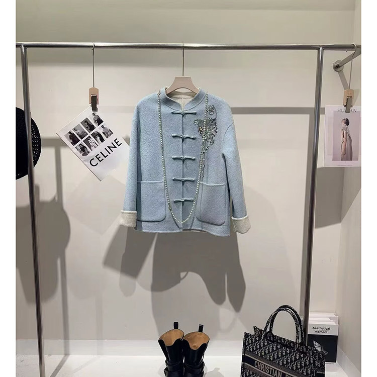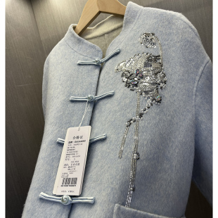 羊毛双面呢 手工盘口宽松外套 重工钉珠刺绣立领新中式