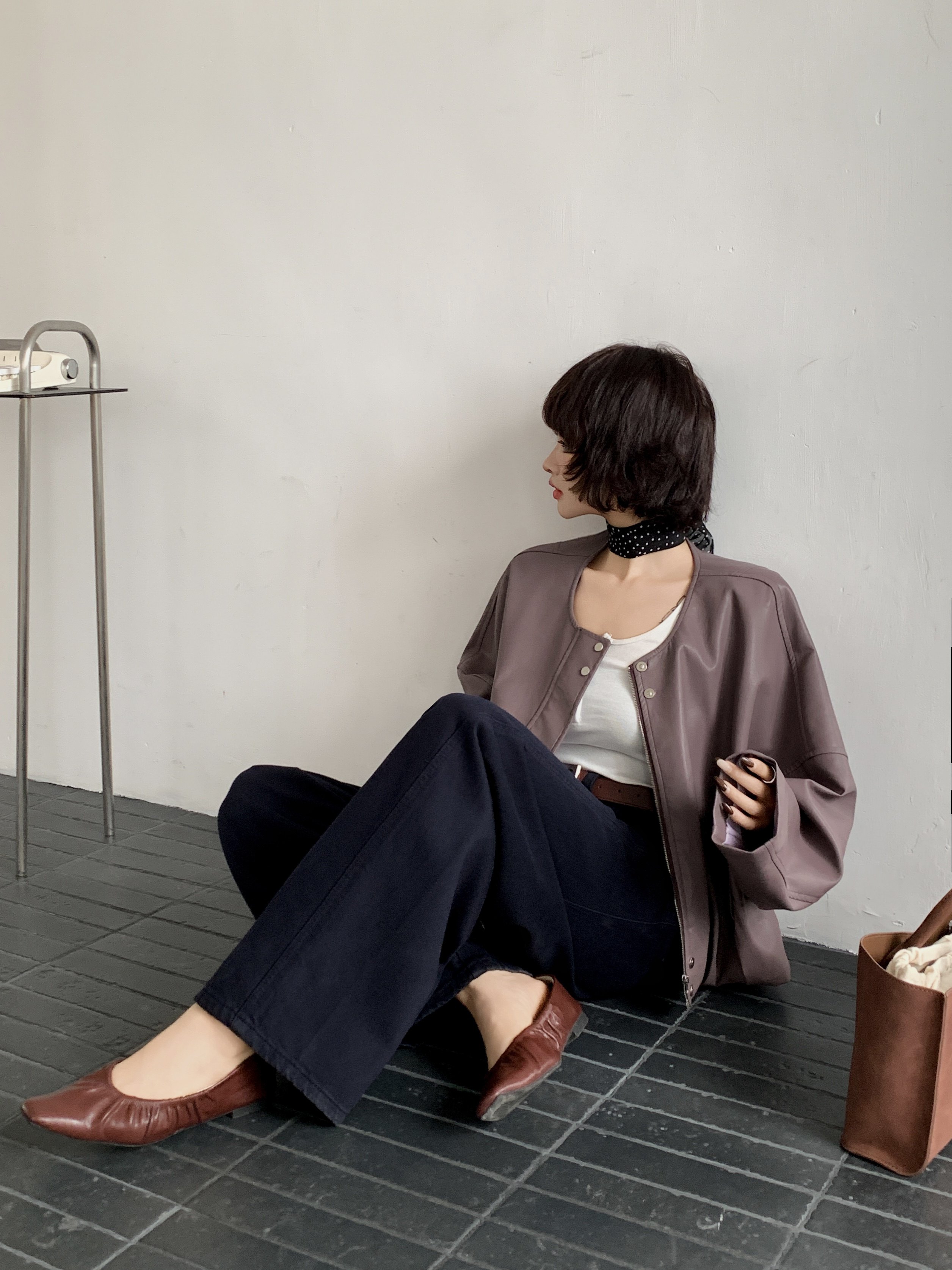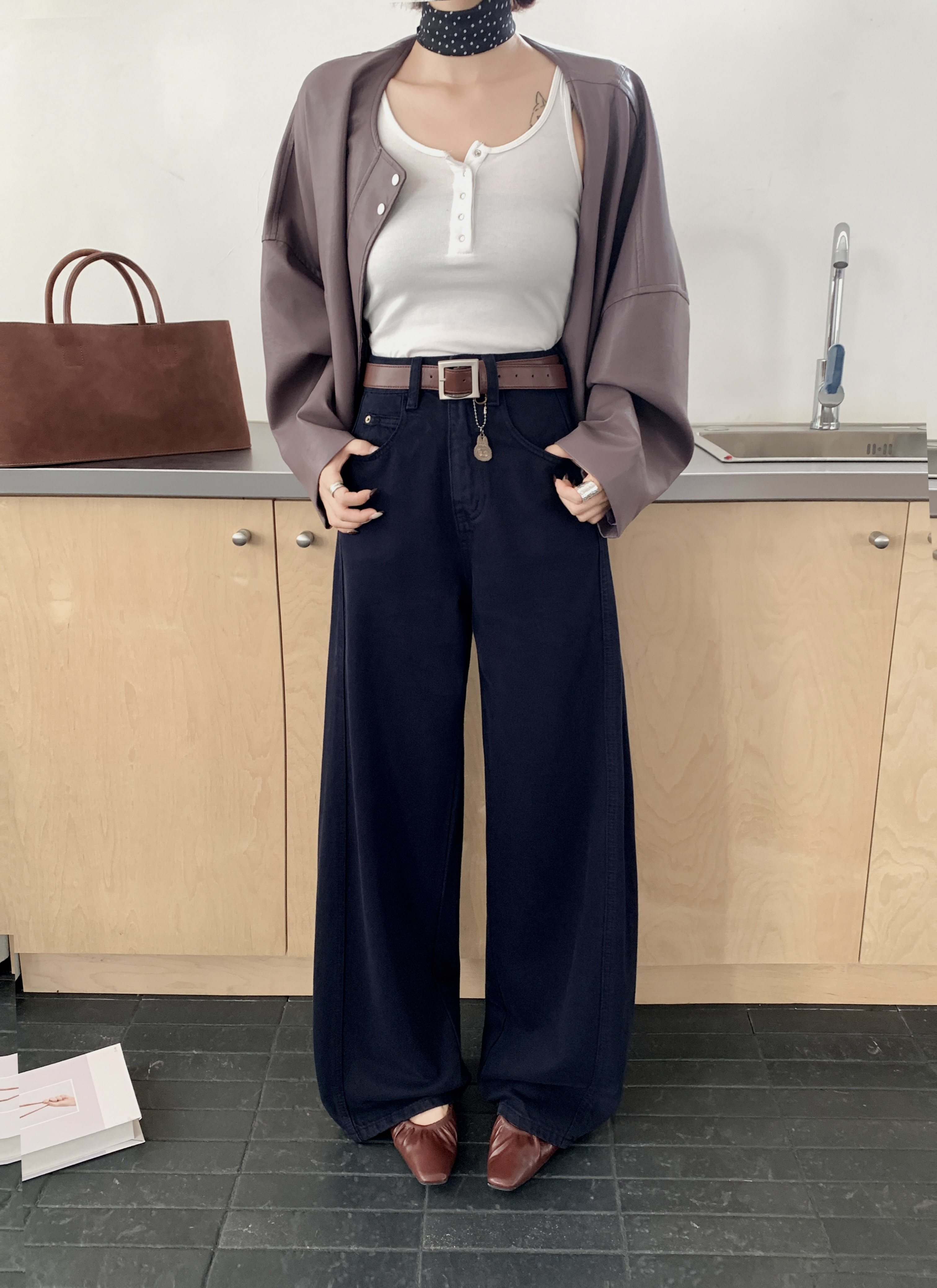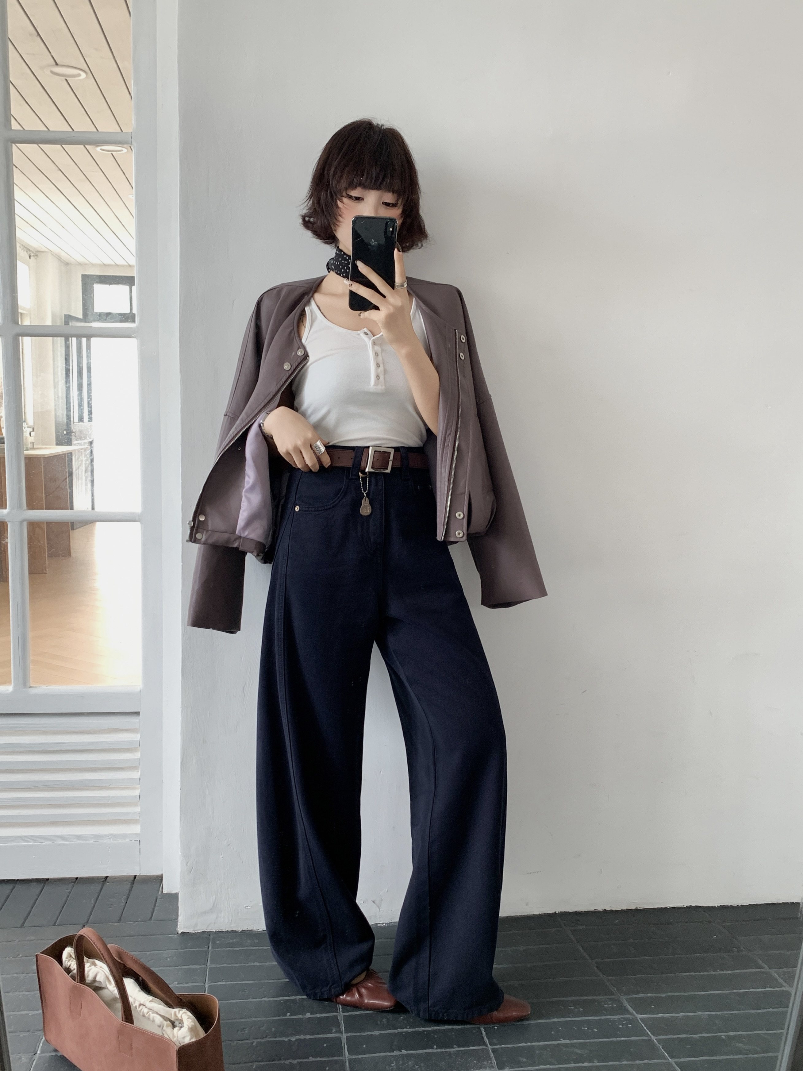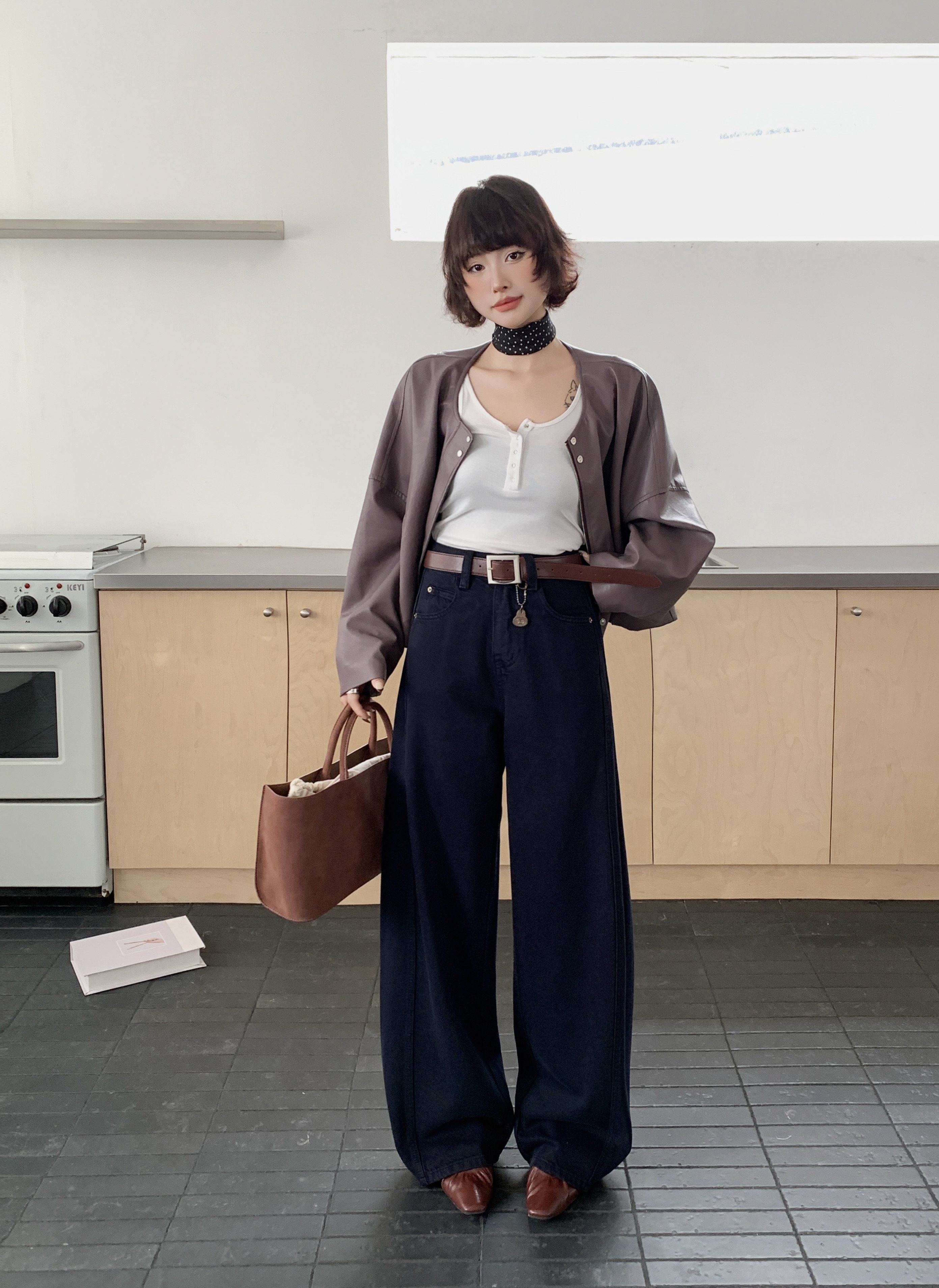 百搭直筒垂感长裤 NEVA 女高腰宽松显瘦休闲裤 米白色阔腿牛仔裤