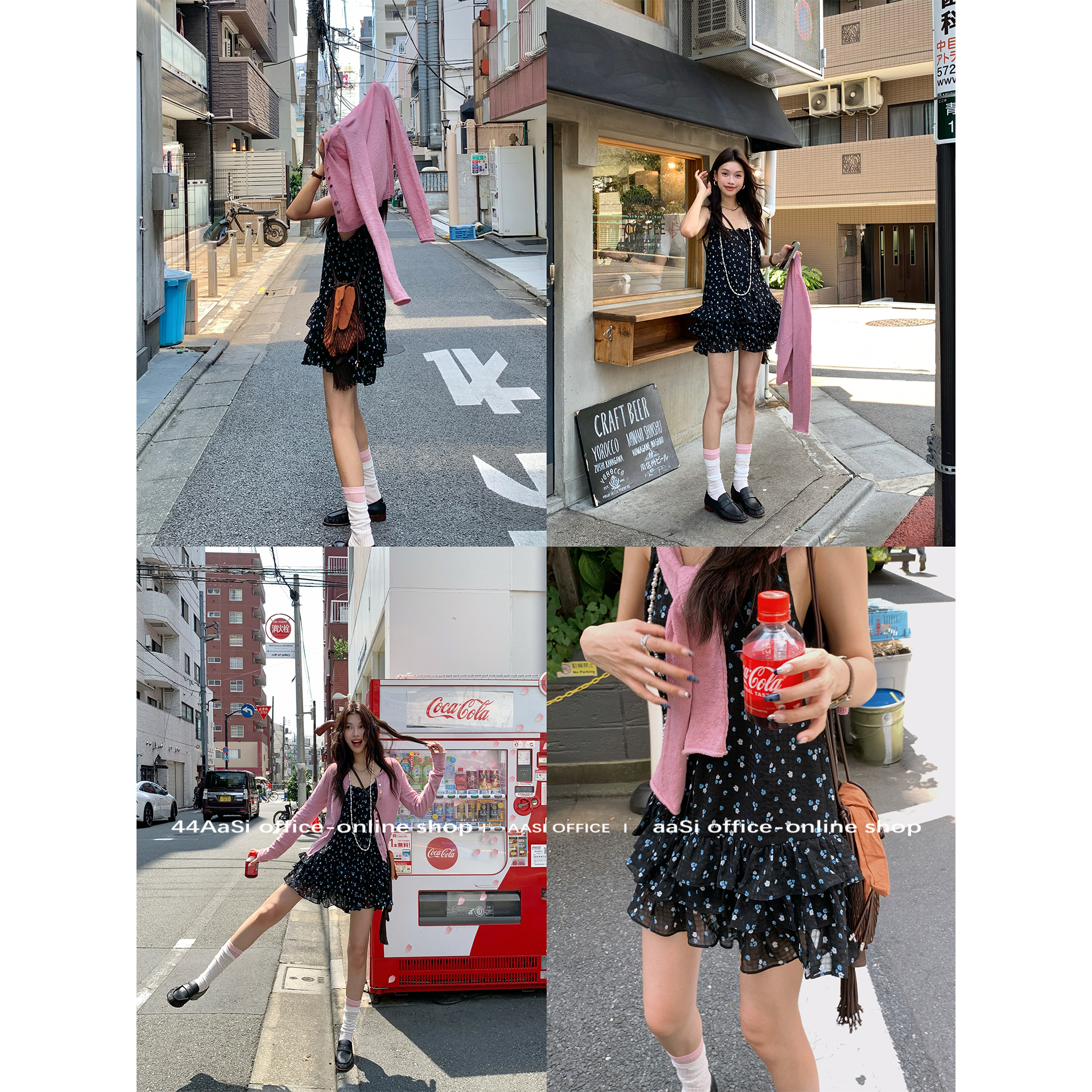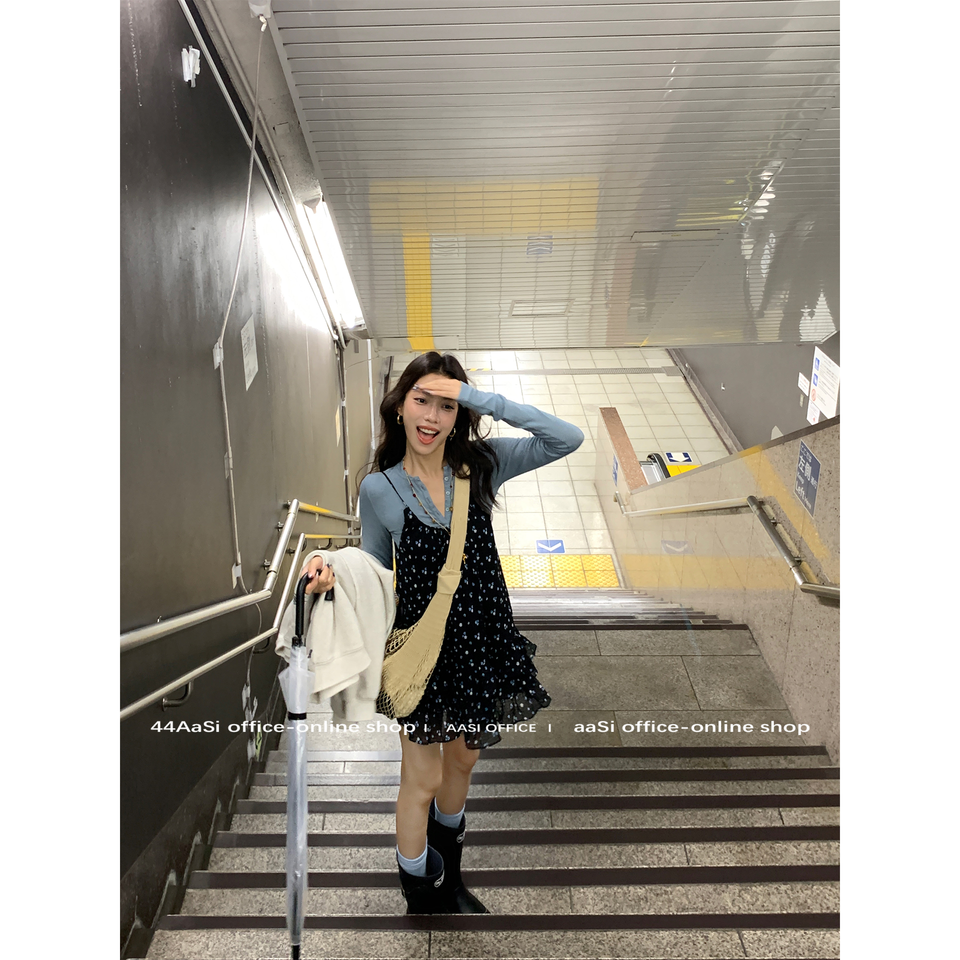 44AaSi 叠穿外搭吊带层次垂感半身连衣裙 济州蓝雪花