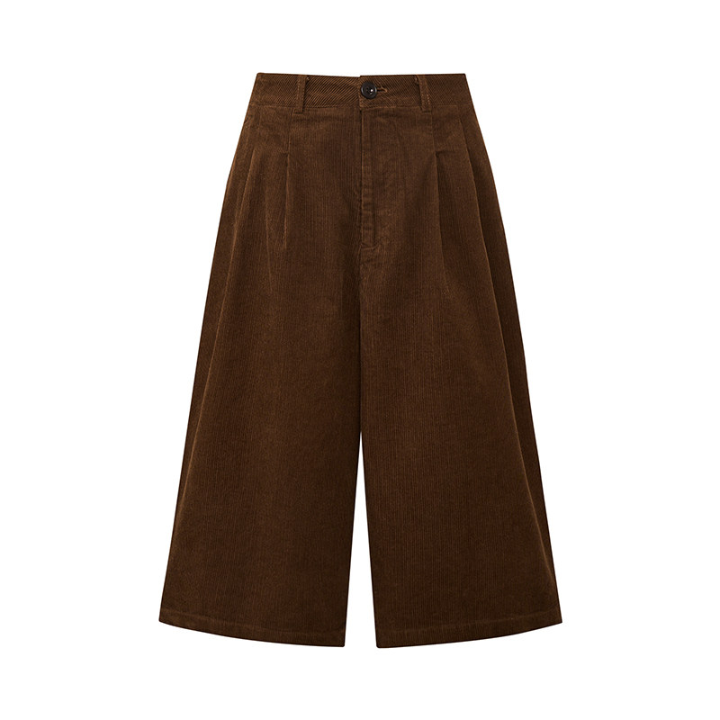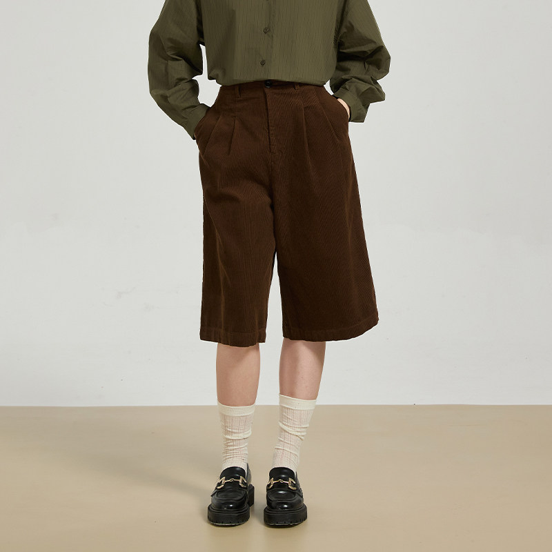 秋冬 Petit 女 五分裤 对称压褶显瘦 Bari复古简约灯芯绒直筒中裤