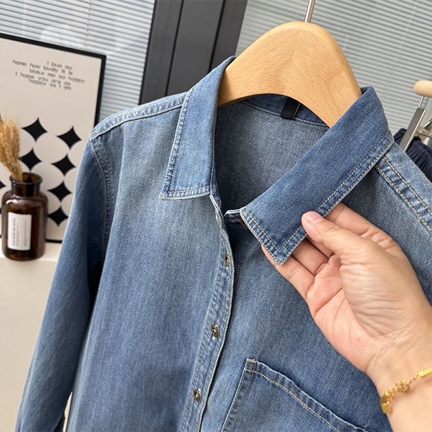 欧美风水洗磨白方领衬衫 直筒宽松叠穿百搭外套女中性风牛仔衬衣潮