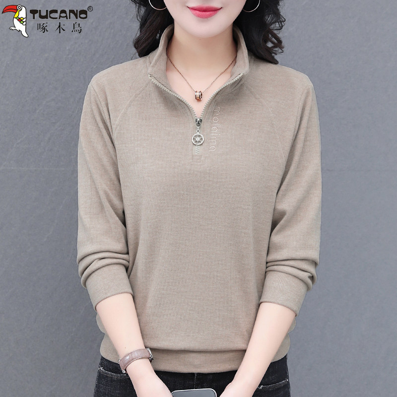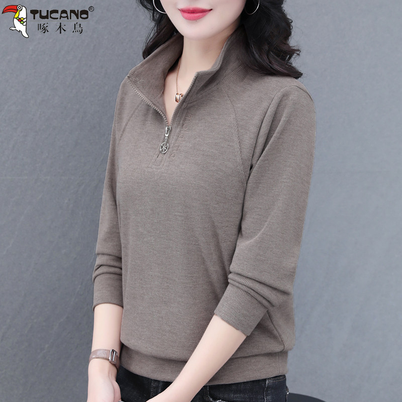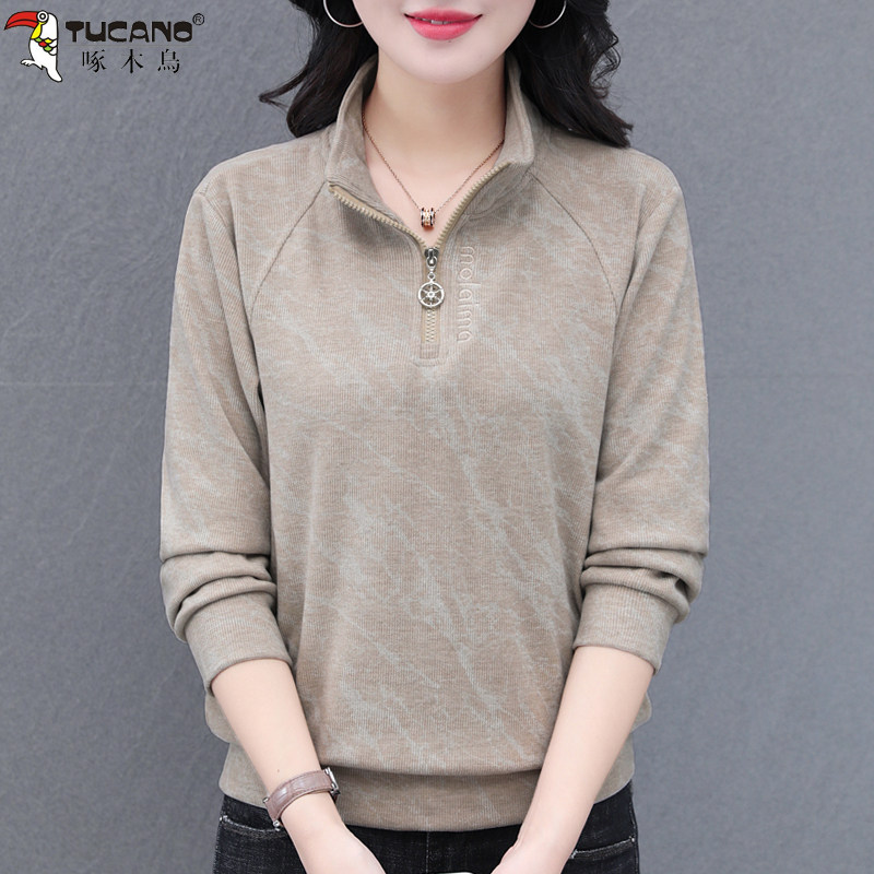 洋气休闲长袖 春秋妈妈时尚 上衣 2025新款 啄木鸟半拉链立领卫衣女款