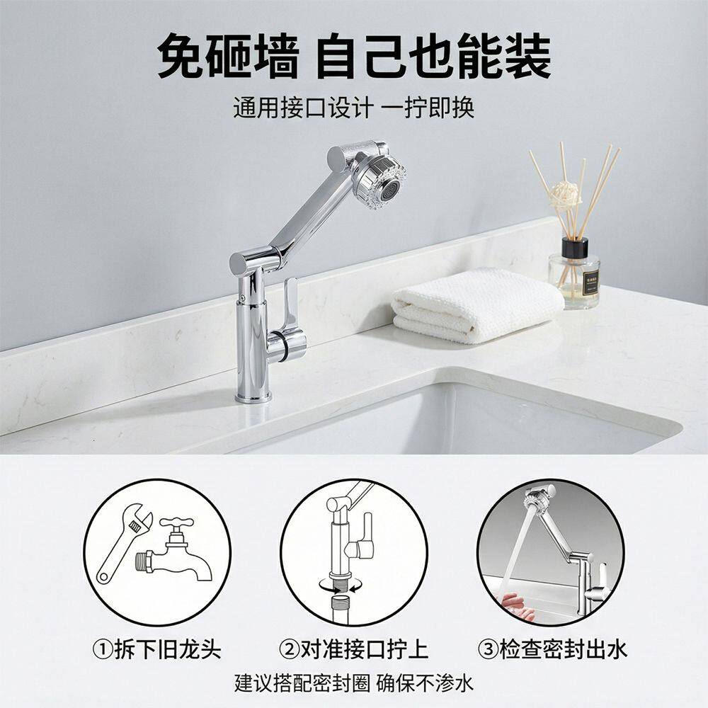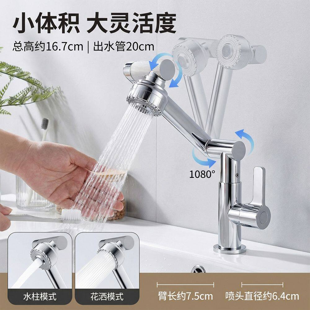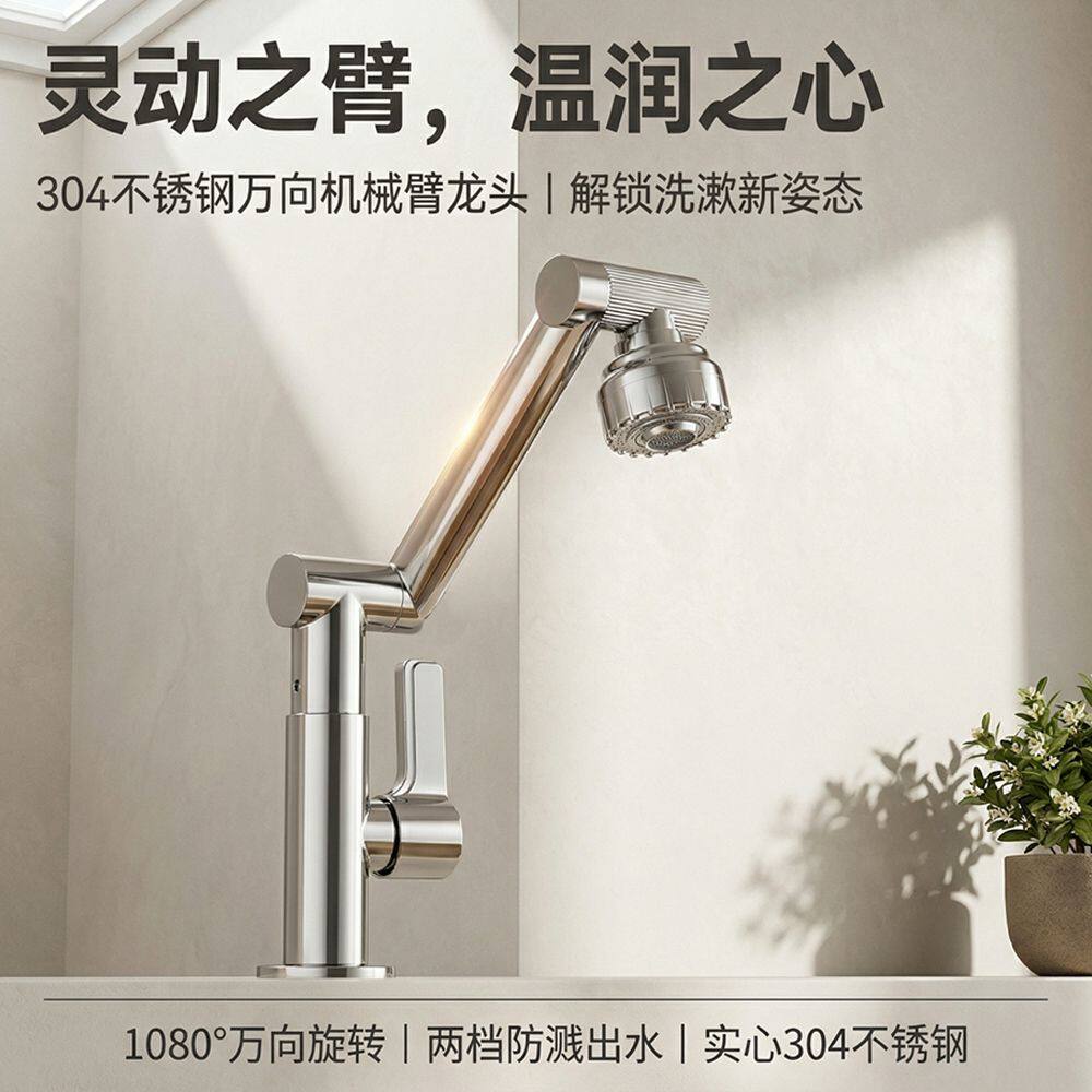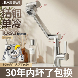 单冷万向机械臂洗脸盆水龙头洗手盆冷热两用二合一卫生间面盆浴室