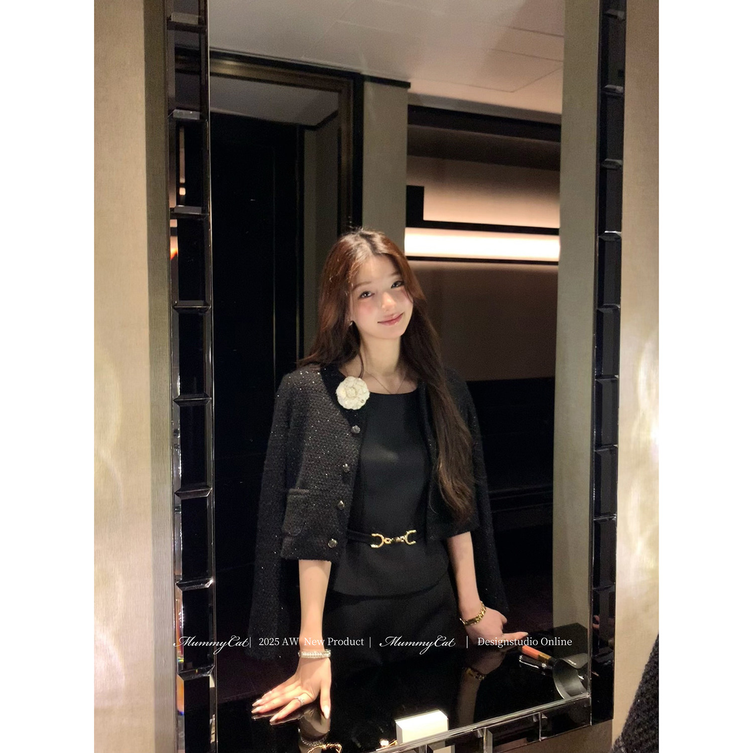 羊毛气质细闪银丝小香外套 25新品 MummyCat下蛋喵 伦勃朗夜色