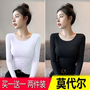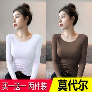上衣百搭打底衫 莫代尔保暖长袖 内搭洋气圆领修身 春秋季 t恤女新款