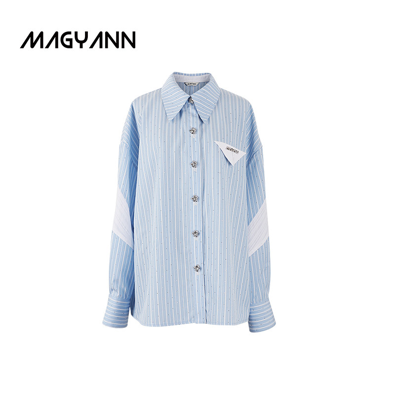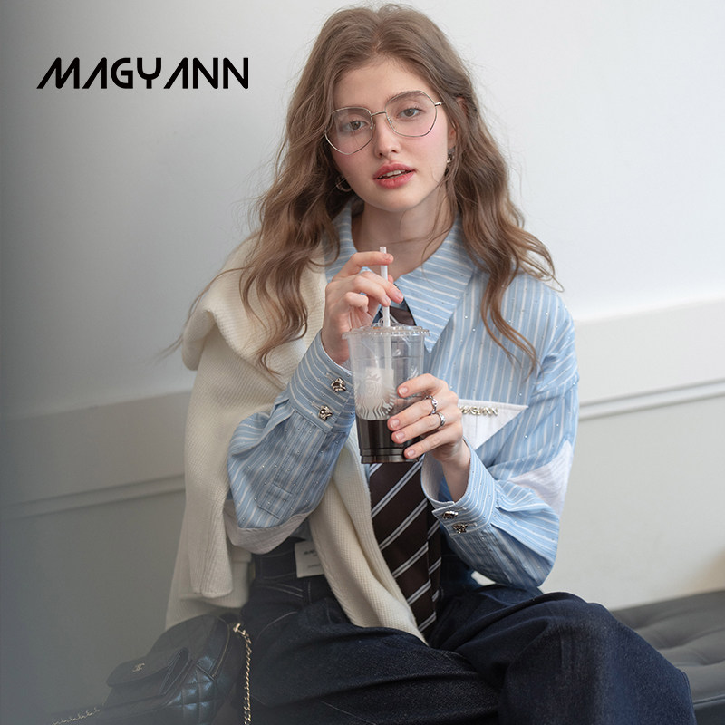 女 Magyann设计师原创2026春拼接不对称几何蕾丝衬衫 白日流萤