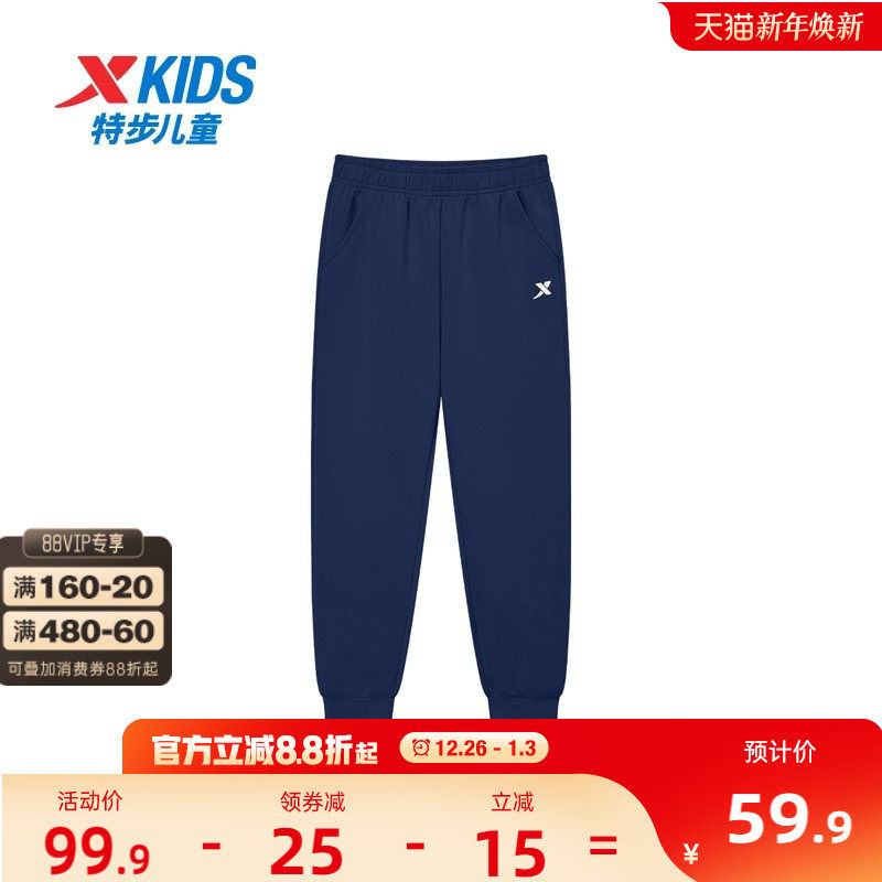 2025新款 卫裤 大童秋冬款 特步童装 子冬装 男童长裤 加绒裤 儿童运动裤