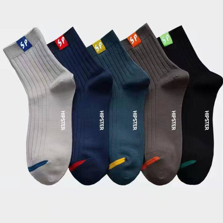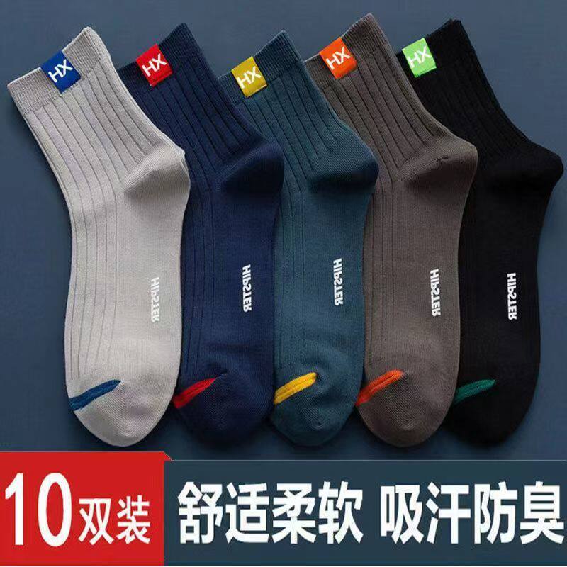 5双袜子男女纯棉防臭中筒袜情侣刺绣学生百搭ins高帮运动长筒袜潮