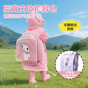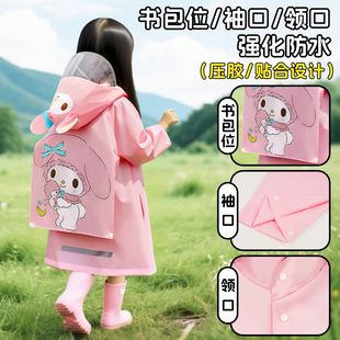 库洛米儿童雨衣女童女孩新款 幼儿园学生上学专用带书包位防水雨披