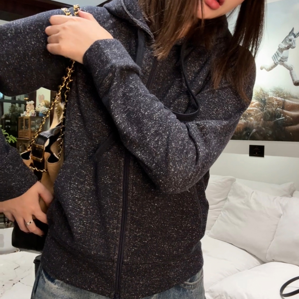外套女款 林肉肉 帽衫 拉链长袖 早秋设计感小众上衣 细闪连帽卫衣
