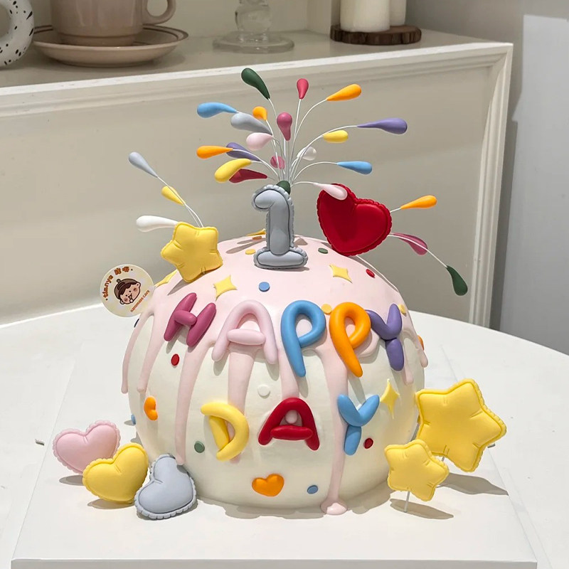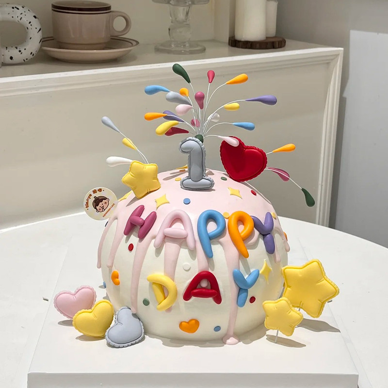 birthday字母模具烘焙插件 饰happy 网红同款 彩色礼花火生日蛋糕装