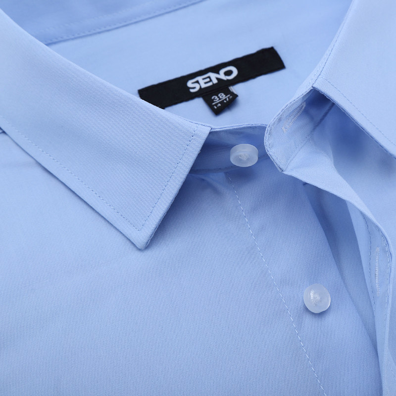 一片式 男长袖 扣领 纯色透气亚麻衬衫 纯色休闲衬衣 平圆方中夏季