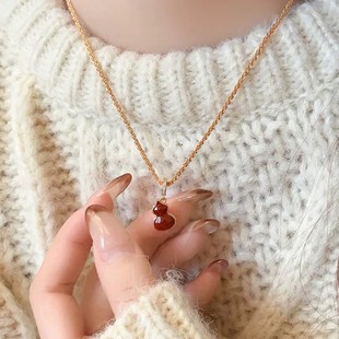 店主推~美拉德皮质吊坠项链小众设计感长款 ins卫衣链 毛衣链个性
