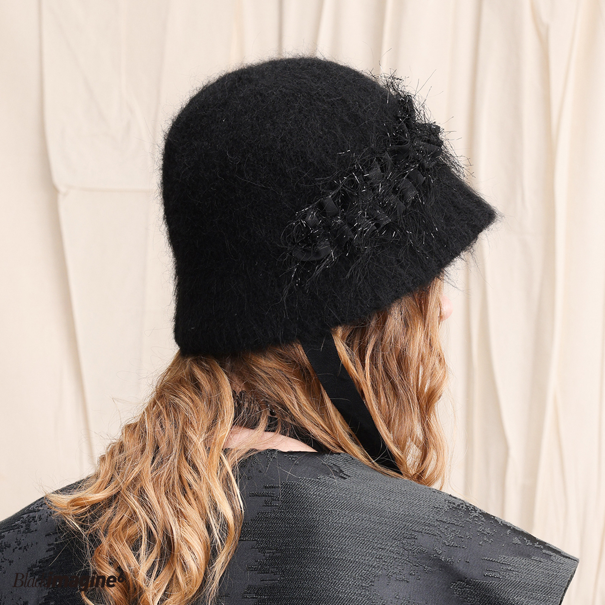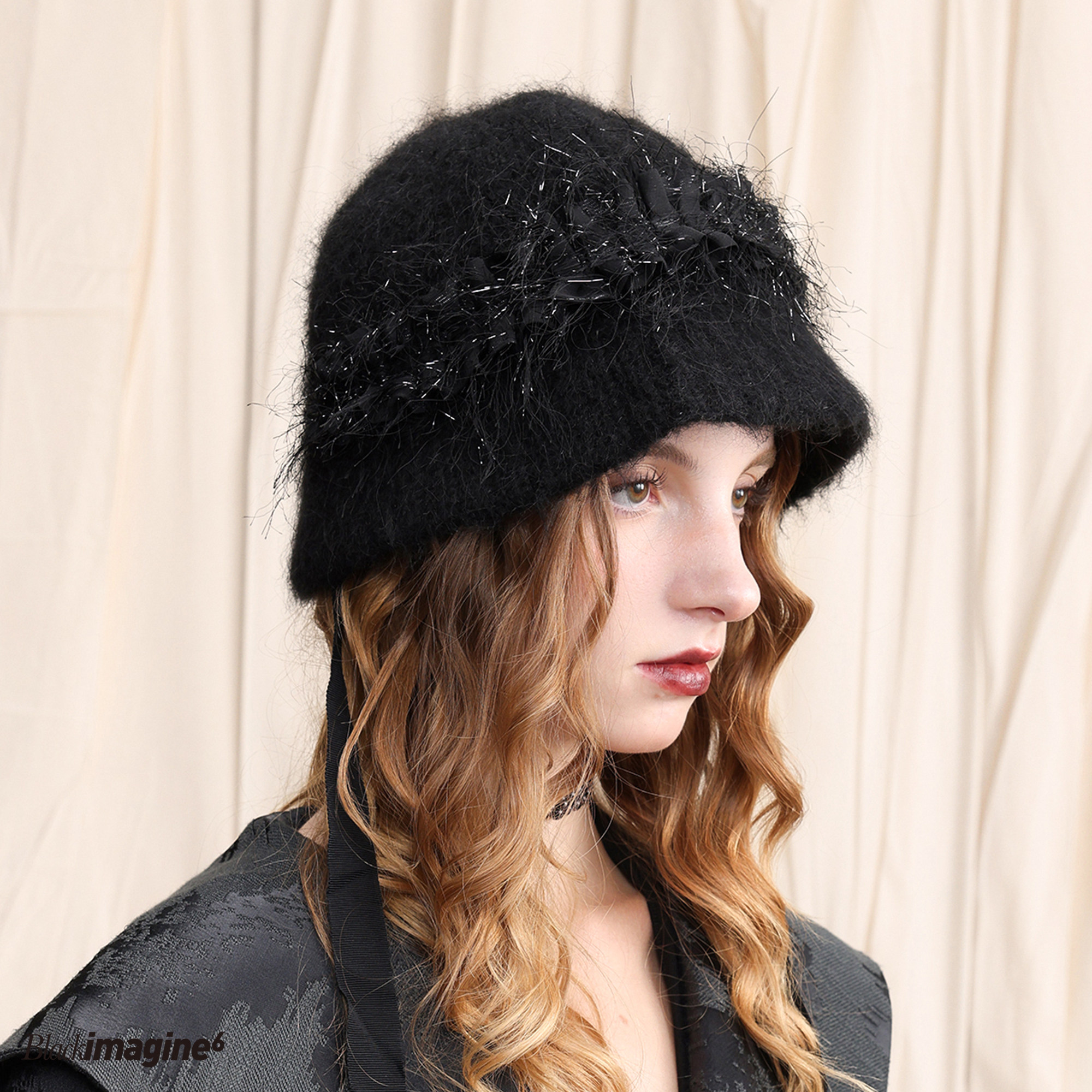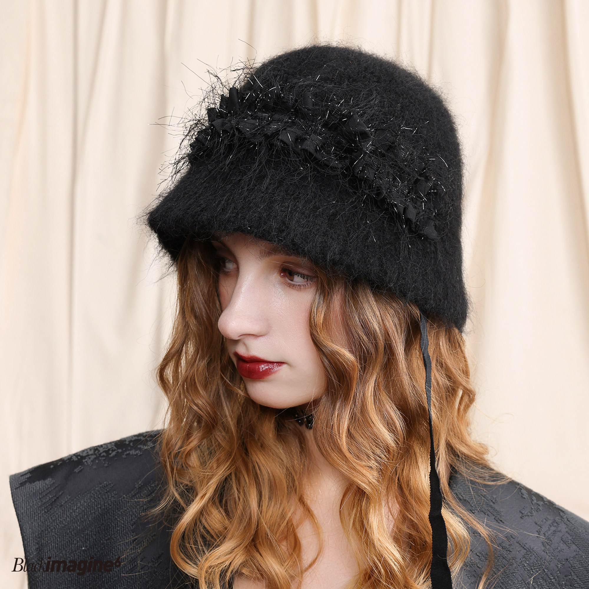 高级感卷边羊毛呢妈妈帽女法式 千金风帽子 复古蝴蝶结渔夫帽秋冬季