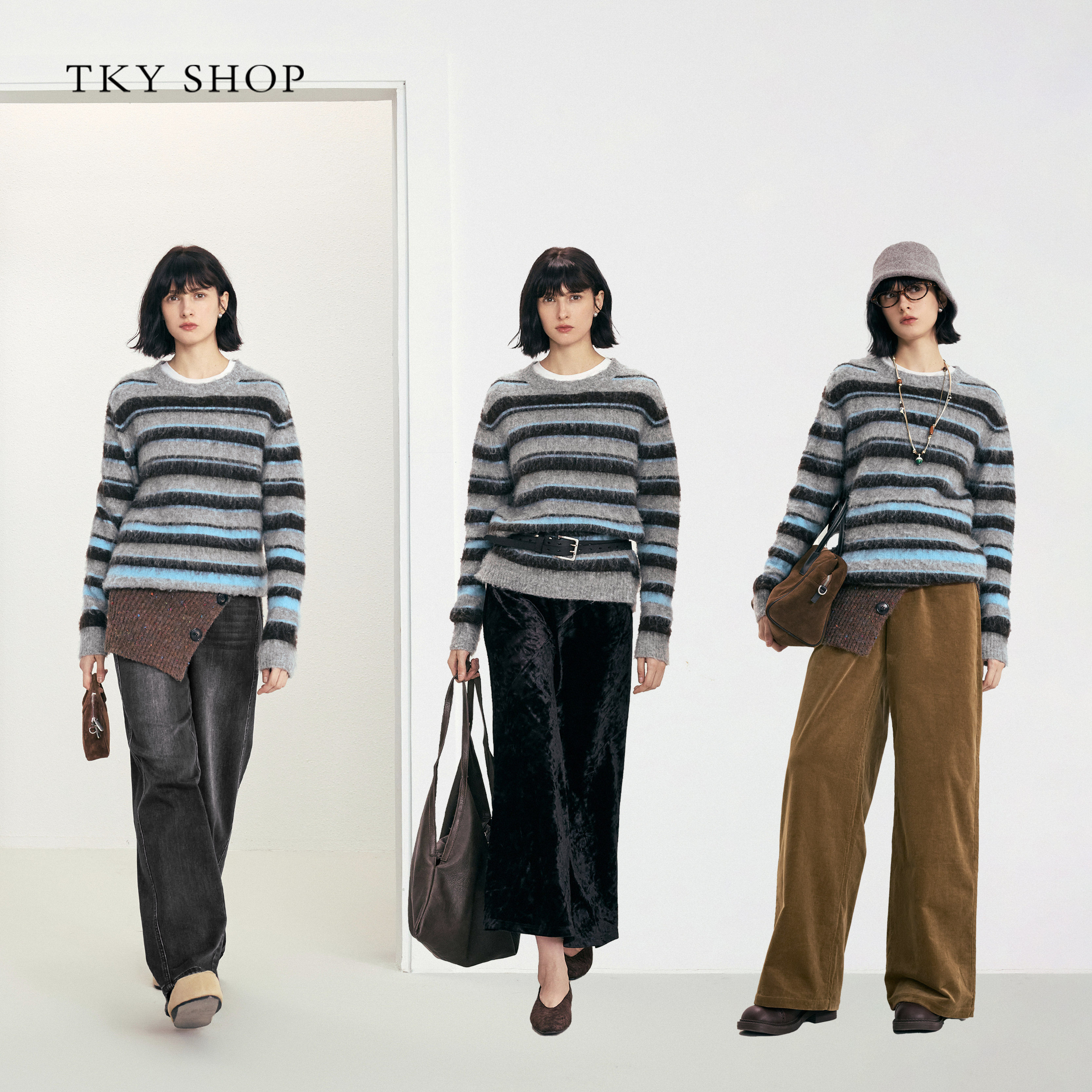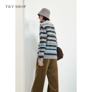女2025冬新款 SHOP条纹渐变针织衫 TKY 毛衣10I1MA03Q065 商场同款