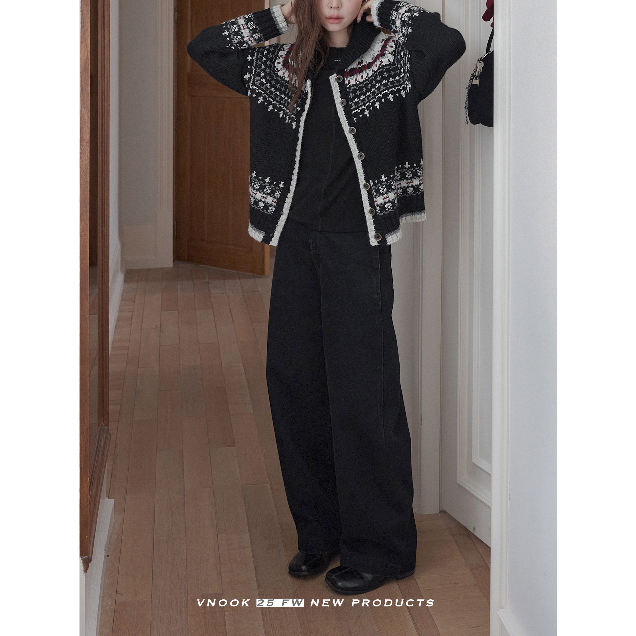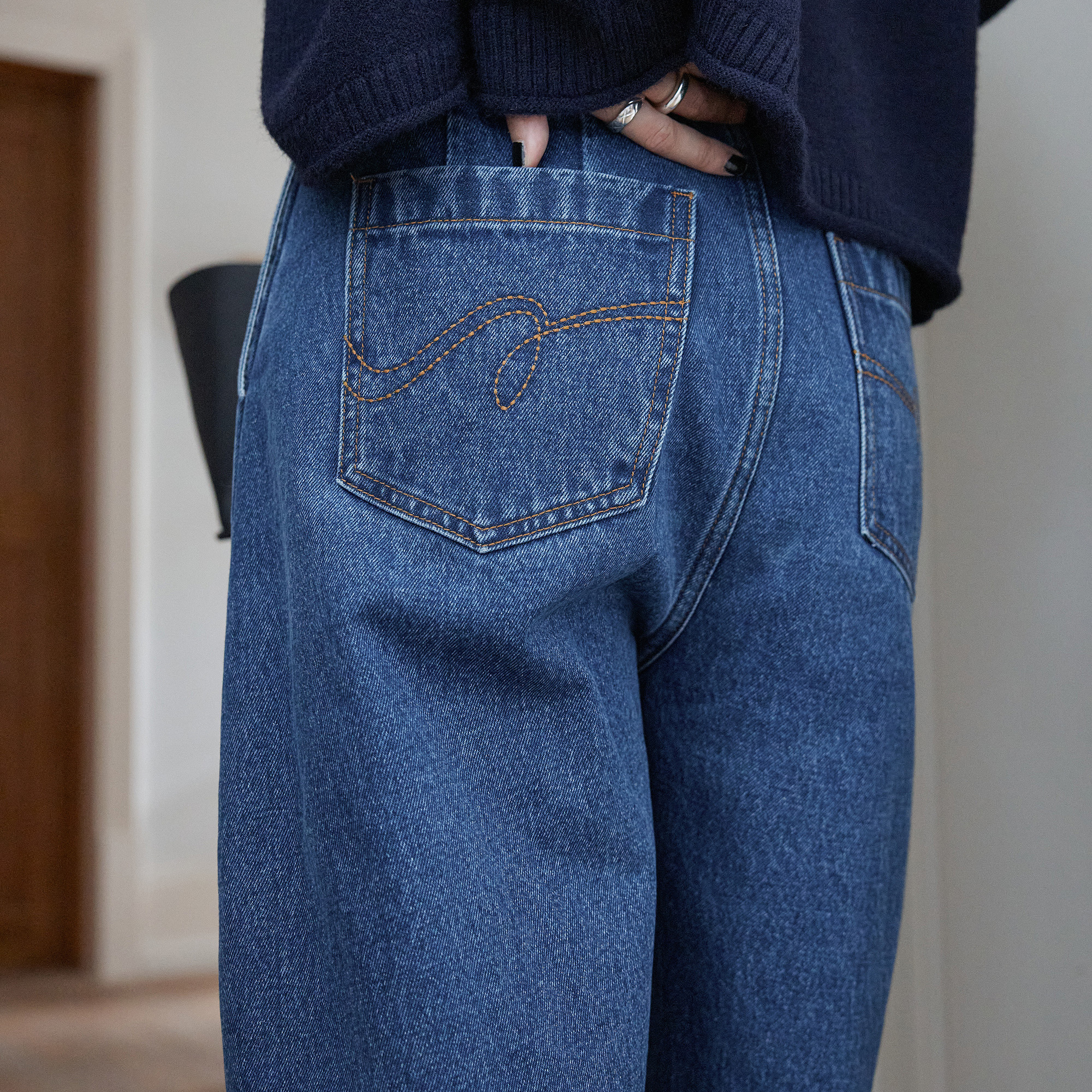中腰显瘦宽松微弧拖地休闲长裤 女秋冬新款 子 复古阔腿牛仔裤 VNOOK