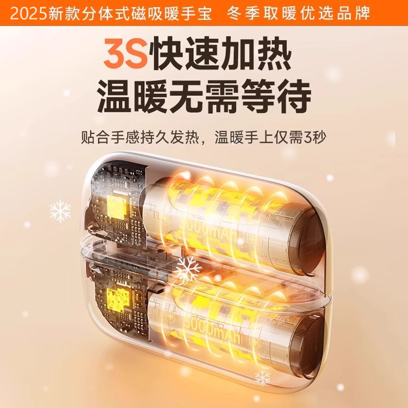 宝宝女生防爆usb随身男生礼物学生儿童热水袋便携手握冬天取暖神器4 二合一分体式 暖手宝2025年新款 磁吸充电款