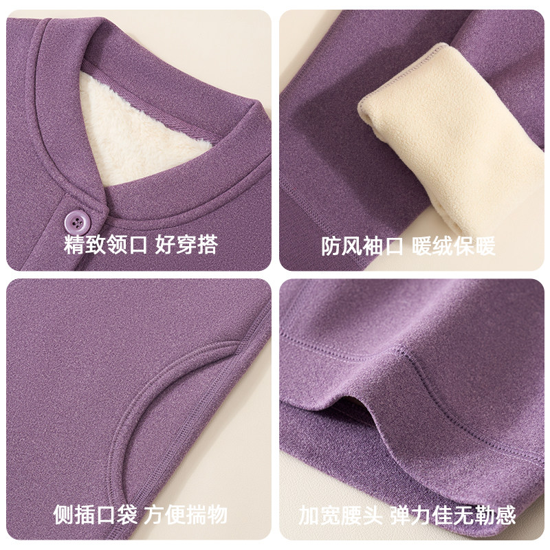 冬季 对襟中老年护膝秋衣秋裤 加厚加绒男女开衫 恒源祥保暖内衣套装
