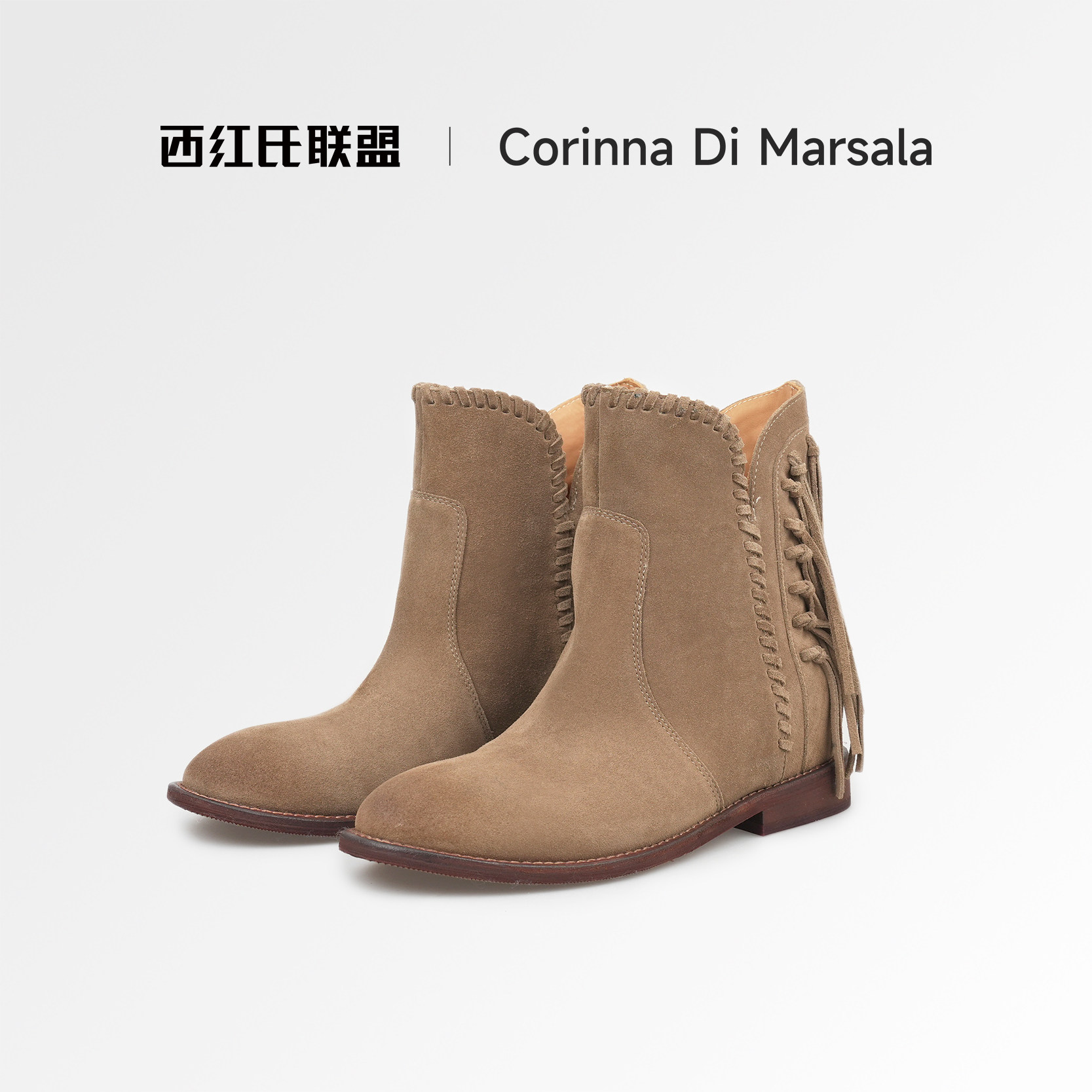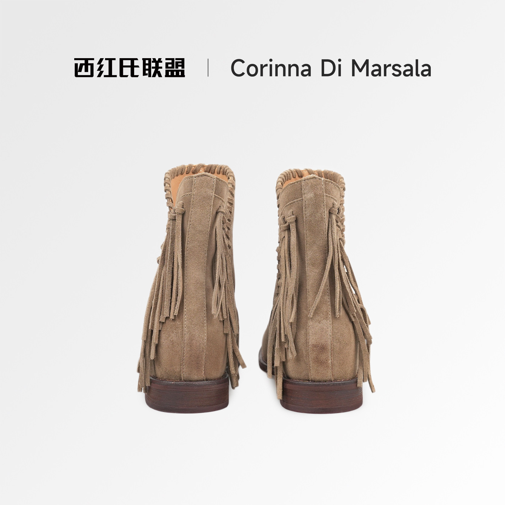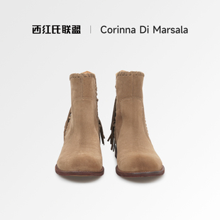 流苏靴子西部靴女百搭短靴女鞋 Marsala牛皮2025新款 Corinna