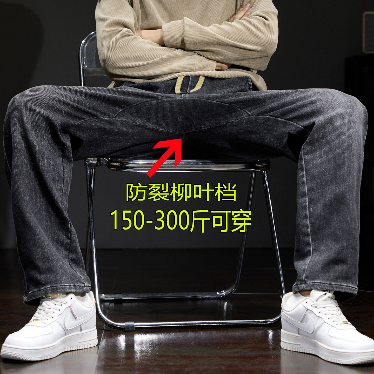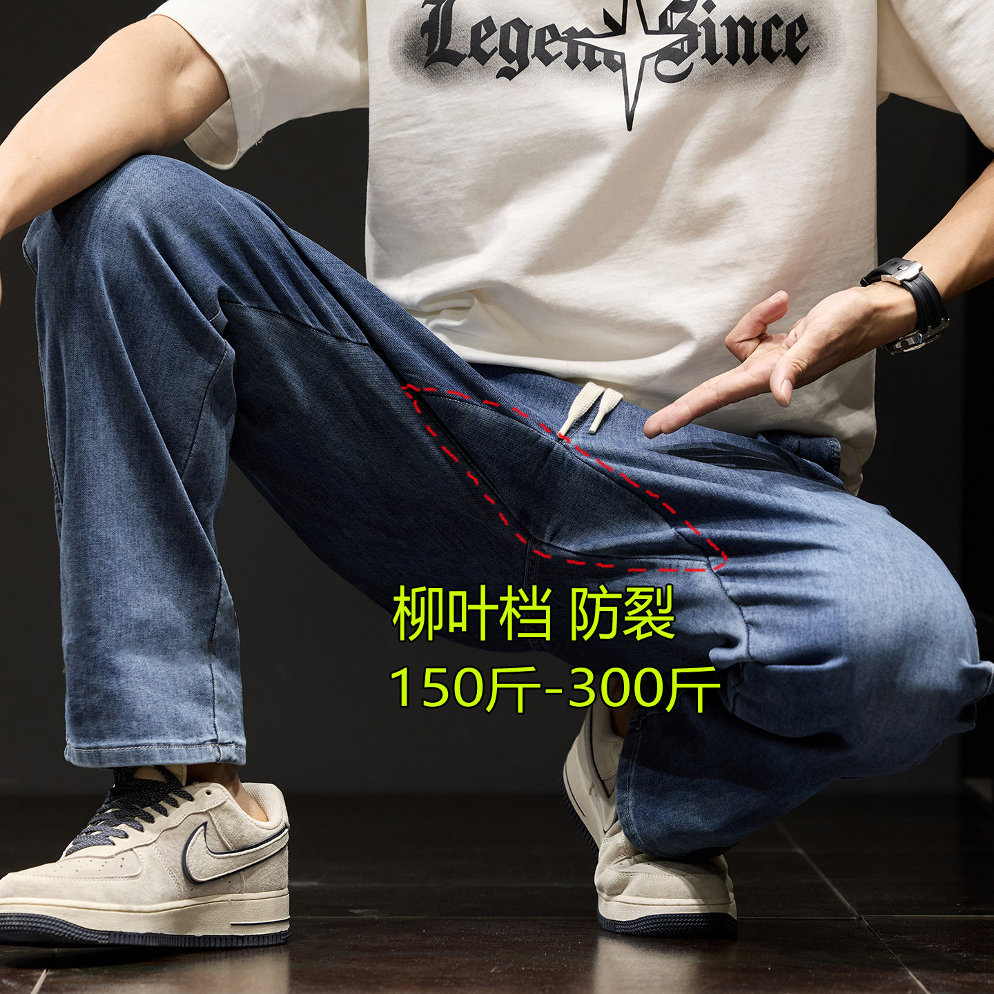 子 春夏裤 防裂柳叶档高弹力松紧腰牛仔裤 男胖胖男生穿搭加肥加大码