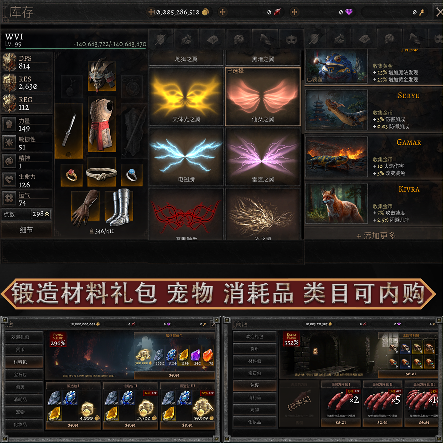 奥尼罗Oniro暗黑安卓游戏多功能菜单高爆商城内购无尽金币专精点