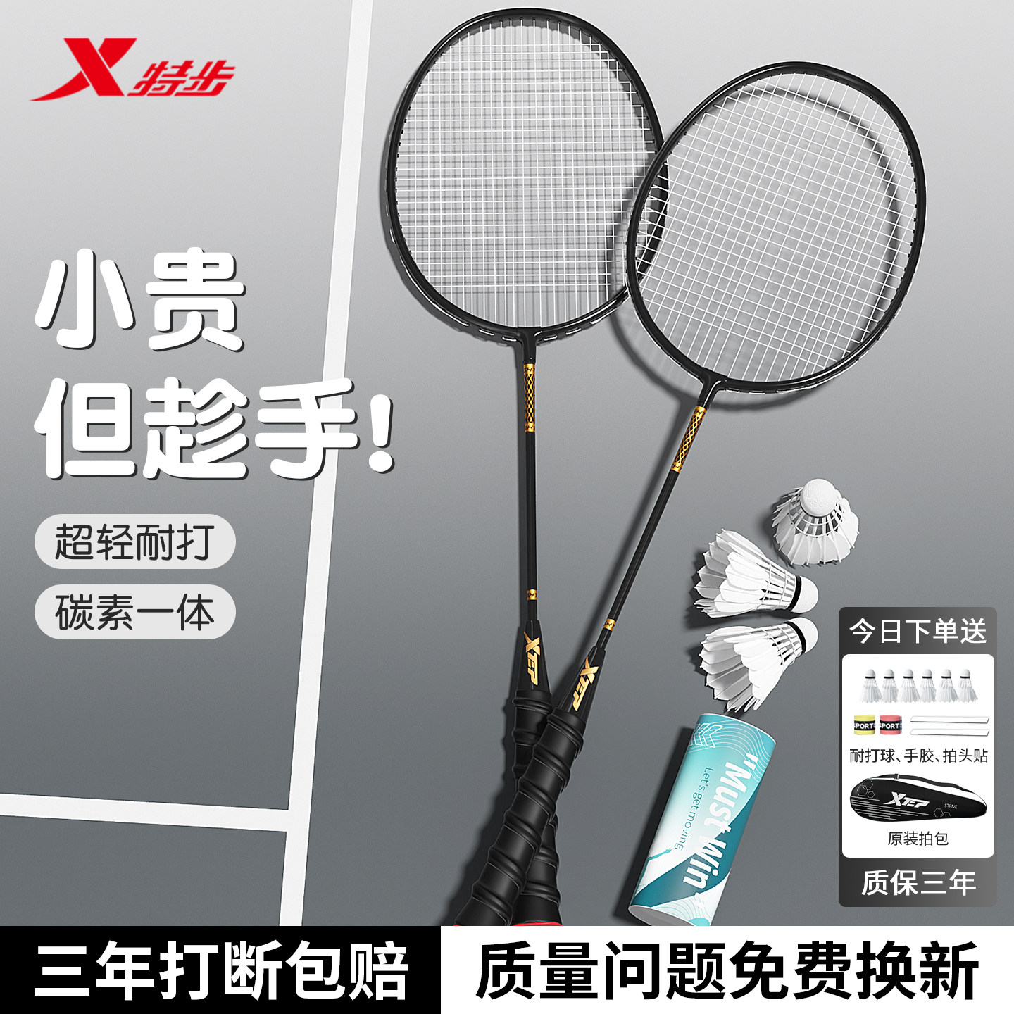 特步羽毛球拍正品 专业级 旗舰店官方碳素纤维超轻成人耐打双拍套装