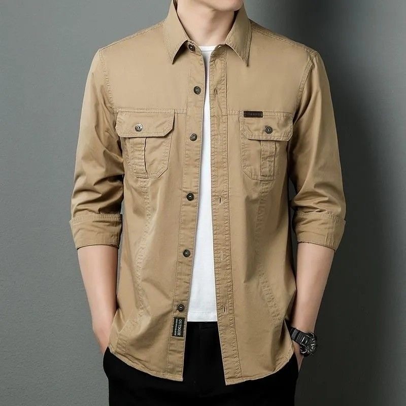 衬衫 宽松潮流户外工装 男春秋季 翻领休闲衬衣大码 外套 薄款 纯棉长袖
