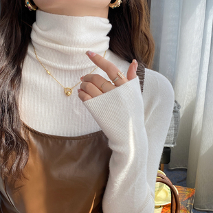 龙妹黑色高领羊毛打底衫 堆堆领高级针织毛衣上衣 女内搭2025冬新款