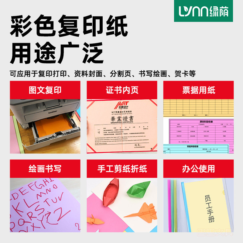 A4彩色纸彩色复印纸打印n纸a480g大红浅蓝浅黄金黄粉红混色a4彩纸