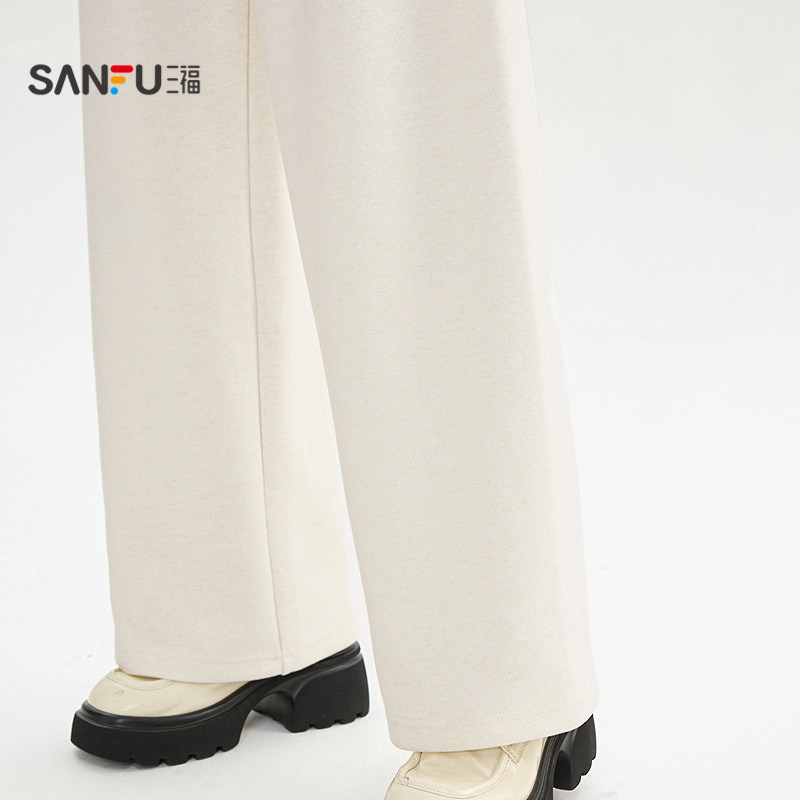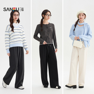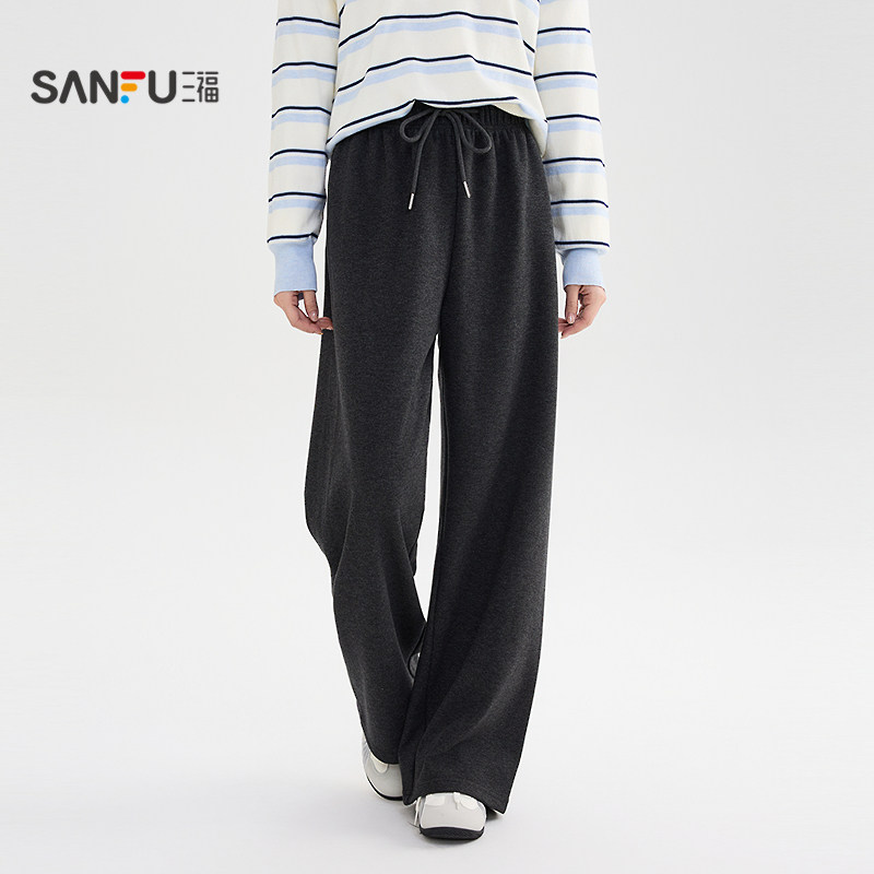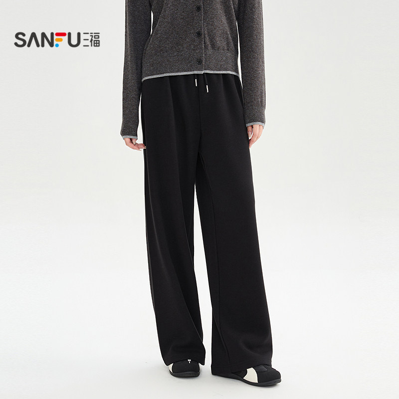 2025新款 女装 冬季 子加厚阔腿长裤 512343 宽松bf慵懒风裤 三福休闲裤