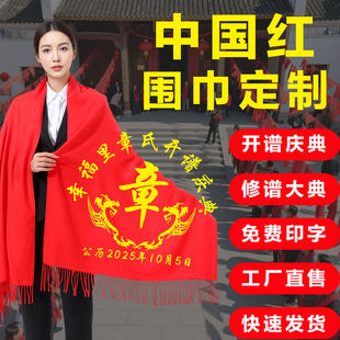 中国红围巾定制刺绣logo公司年会活动大红色围脖同学聚会礼品印字