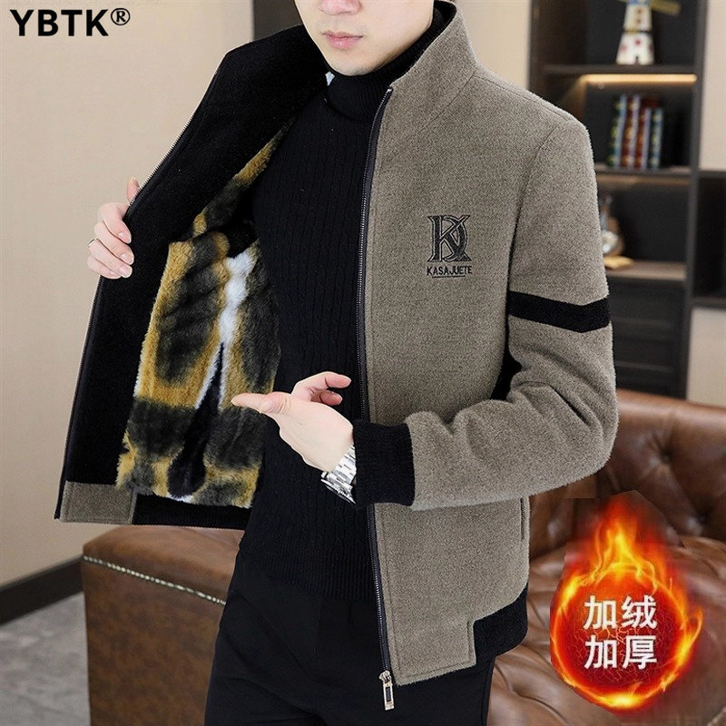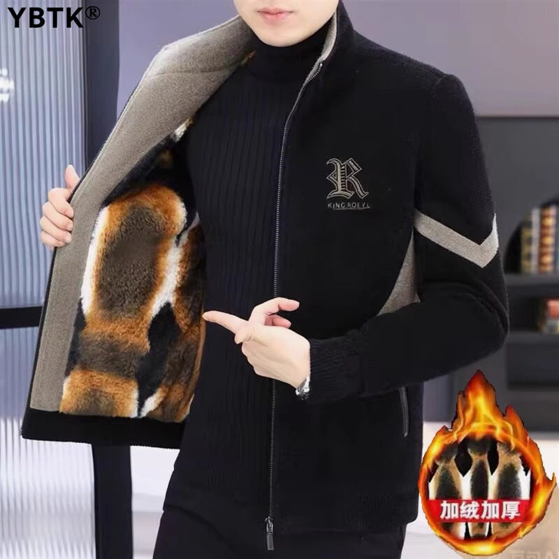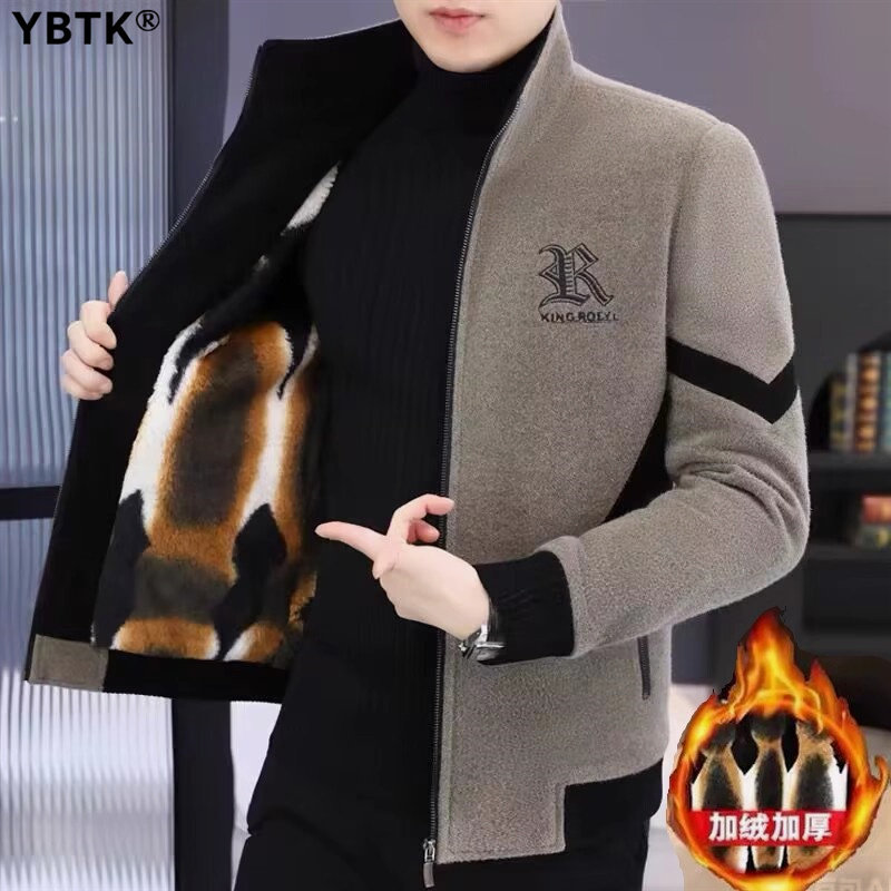 厚 爸爸装 夹克男摇粒绒外套开衫 抓绒上衣保暖衣中老年卫衣加绒大码